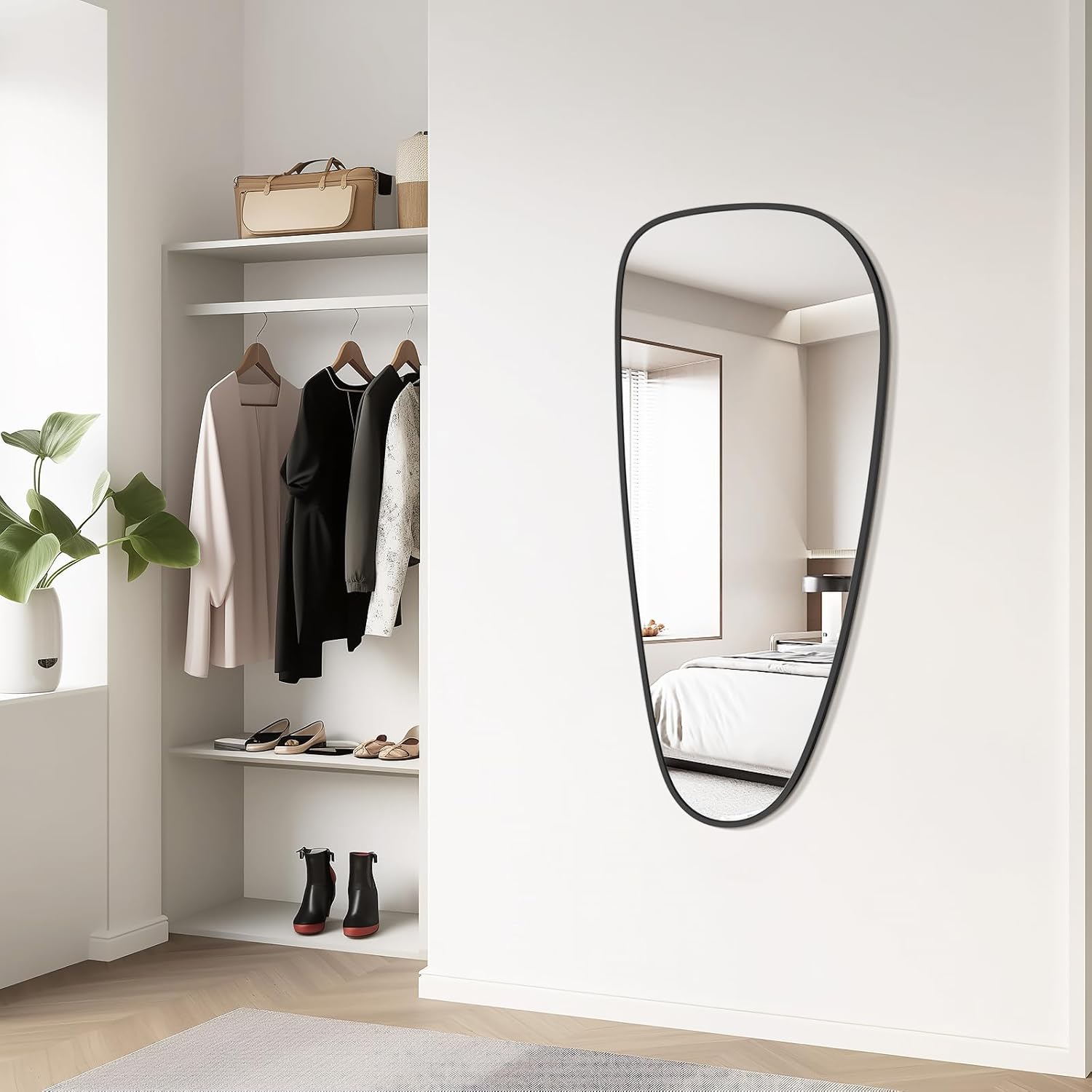 • Unique Asymmetrical Design: This Asymmetrical mirror features a distinctive irregular shape that adds an artistic touch to any space, seamlessly fitting into living rooms, bedrooms, hallways, dressing rooms, and various décor styles.