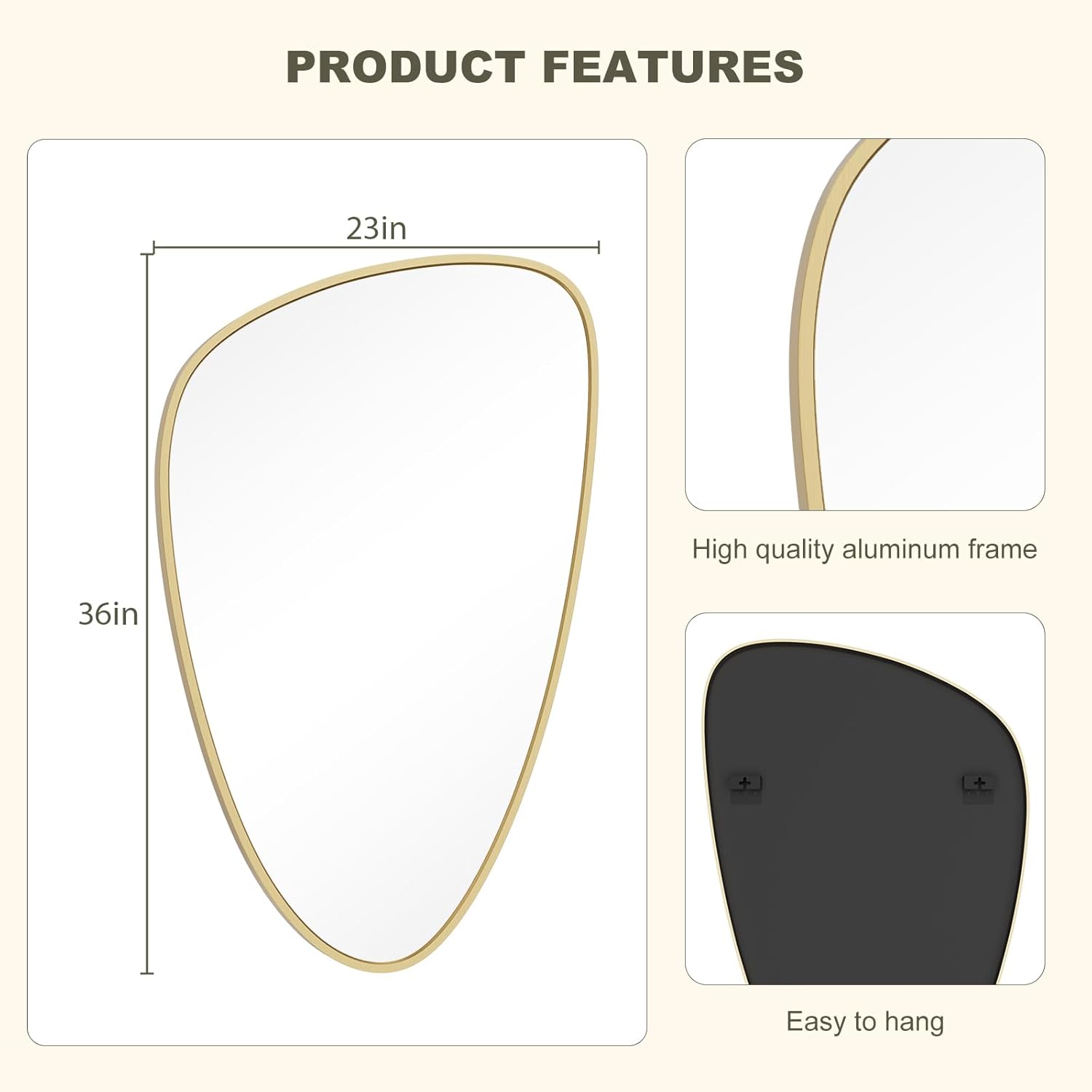 WallBeyond Asymmetrical Mirror, Irregular Wall Mirror, Wall Mirrors Decorative for Bedroom Living Room entryway Hall, Wall Mirror for mid Century Modern Decor 36" H x 23" W, Gold