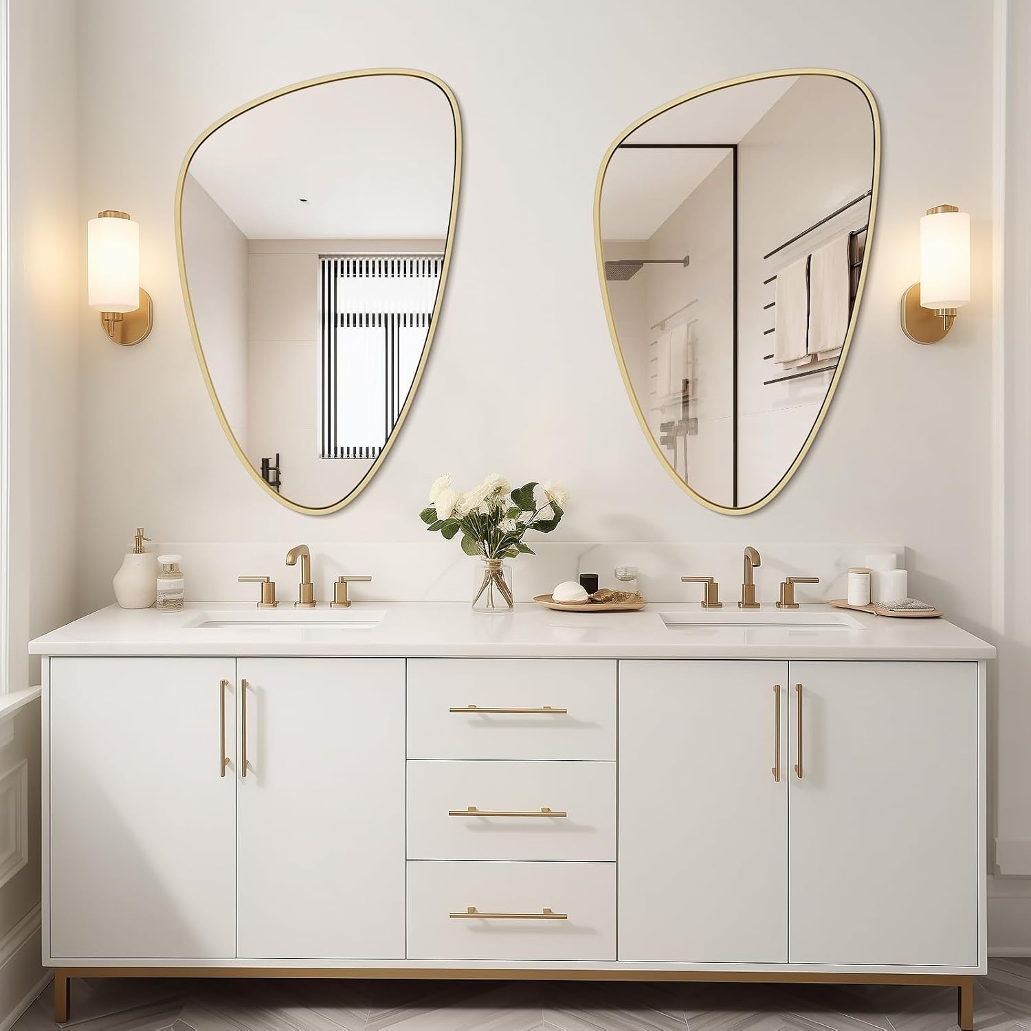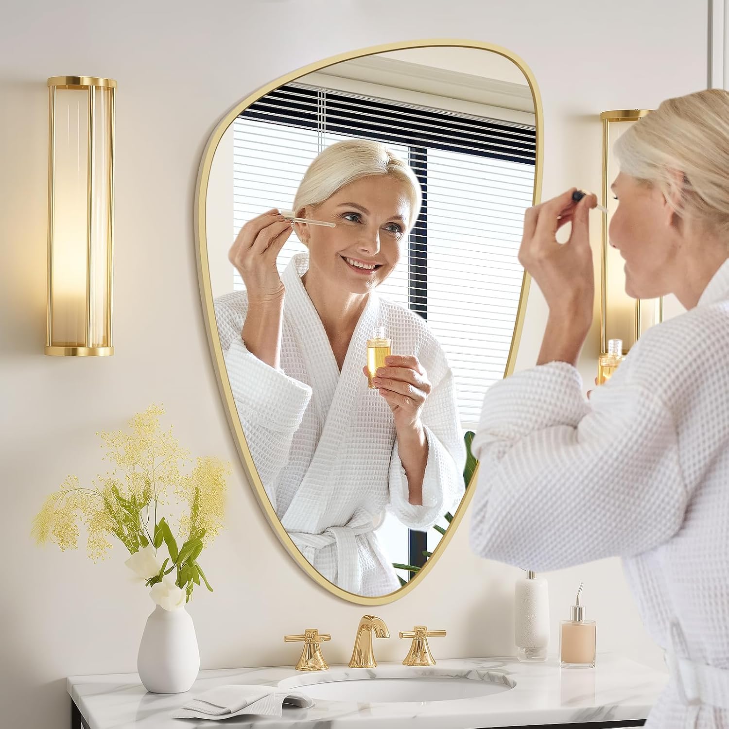 • Exquisite and Durable Aluminum Alloy Frame: The irregular bathroom mirror is framed with a robust aluminum alloy that is corrosion-resistant, non-toxic, eco-friendly, and odor-free. Its smooth, colorfast surface enhances both durability and modern aesthetic appeal.