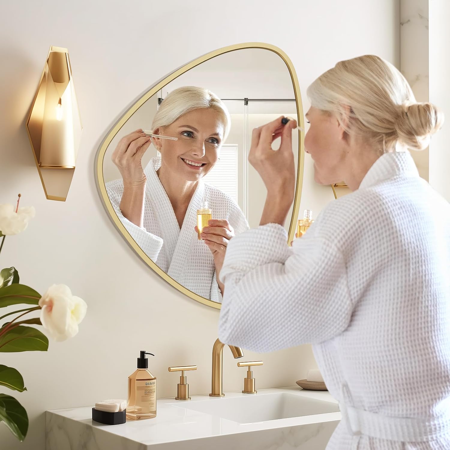 • Exquisite and Durable Aluminum Alloy Frame: The irregular bathroom mirror is framed with a robust aluminum alloy that is corrosion-resistant, non-toxic, eco-friendly, and odor-free. Its smooth, colorfast surface enhances both durability and modern aesthetic appeal.