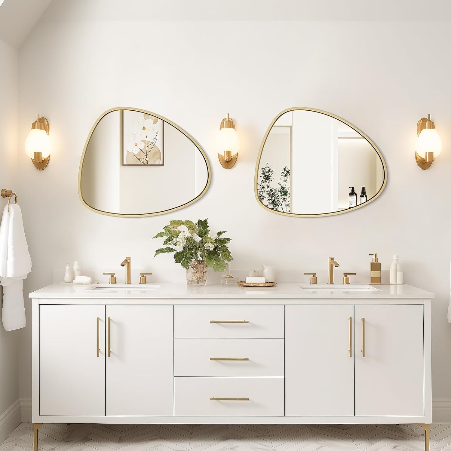 • Versatile Decorative Function: Its elegant asymmetrical shape makes it a versatile decorative piece, perfect for bathrooms, bedrooms, dining rooms, entryways, hotels, and more, offering both style and functionality.