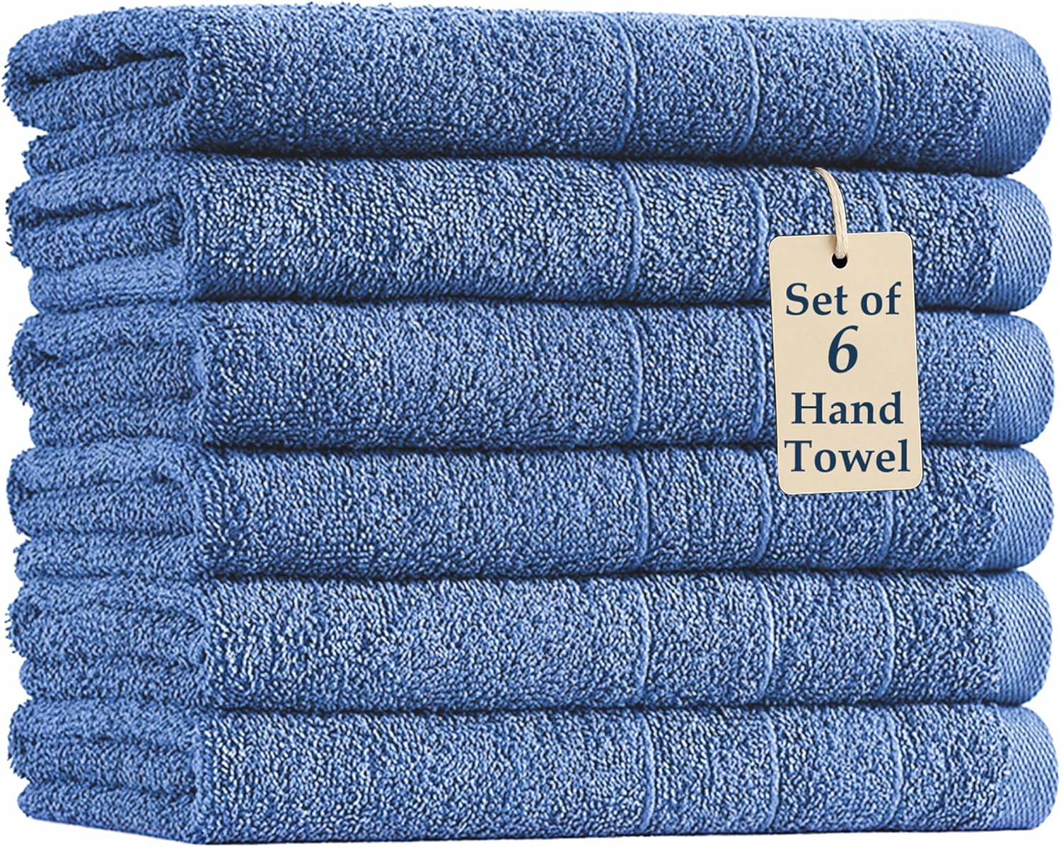 Casa Platino 100% Cotton Hand Towels for Bathroom Set of 6 (16"x28") - Spa & Hotel Quality - Ring Spun - Quick Dry, Soft & Absorbent Bath Hand Towel 6 Pack - Suitable for All Skin Type - Cerulean Blue