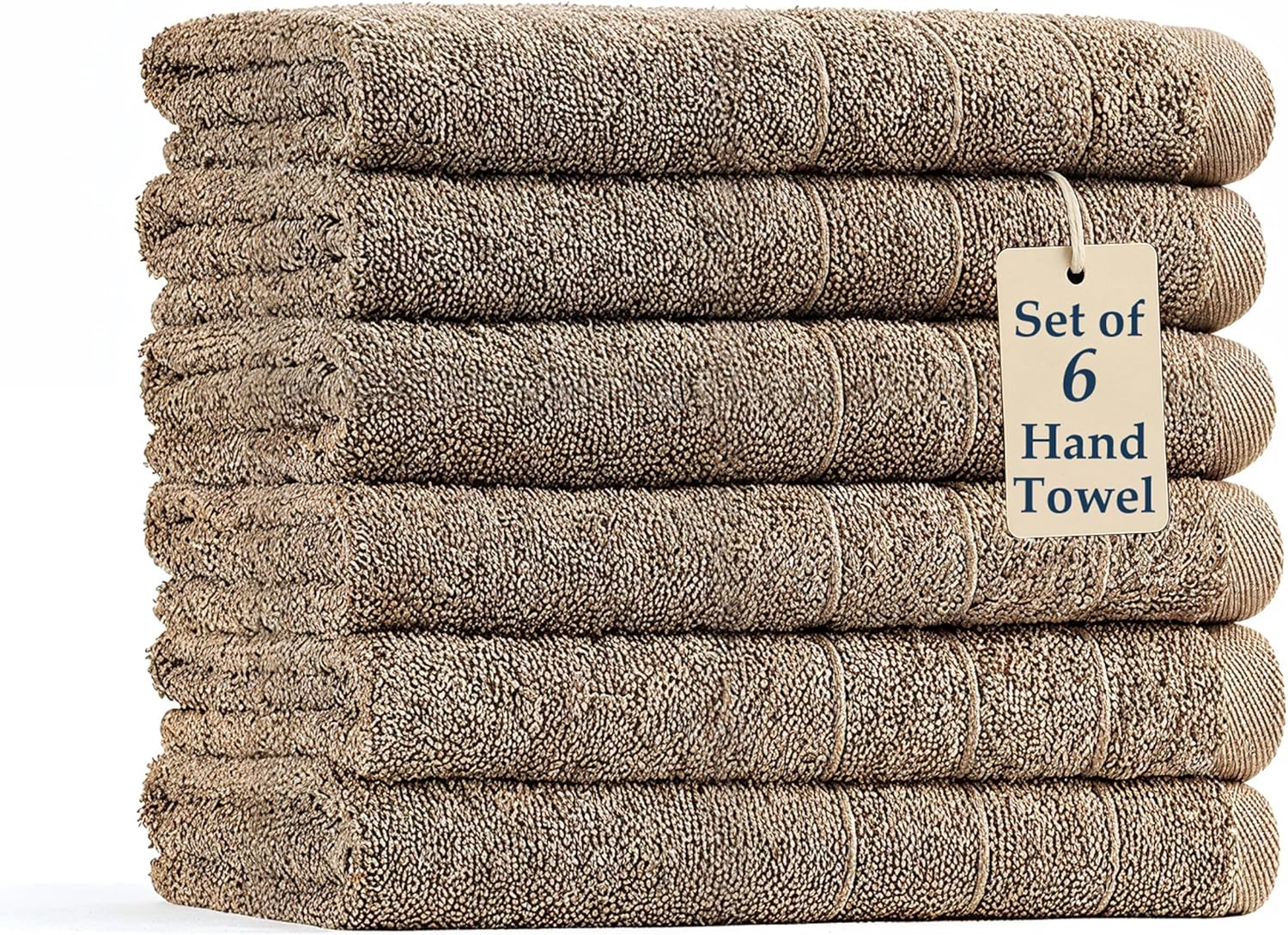 Casa Platino 6 Pack 100% Cotton Hand Towels (16"x28") - Ring Spun - Quick Dry, Soft & Absorbent Hand Towels Set of 6 - Hotel, Spa, Beauty, Gym, Bathroom - Remains Soft After Multiple Washes - Taupe
