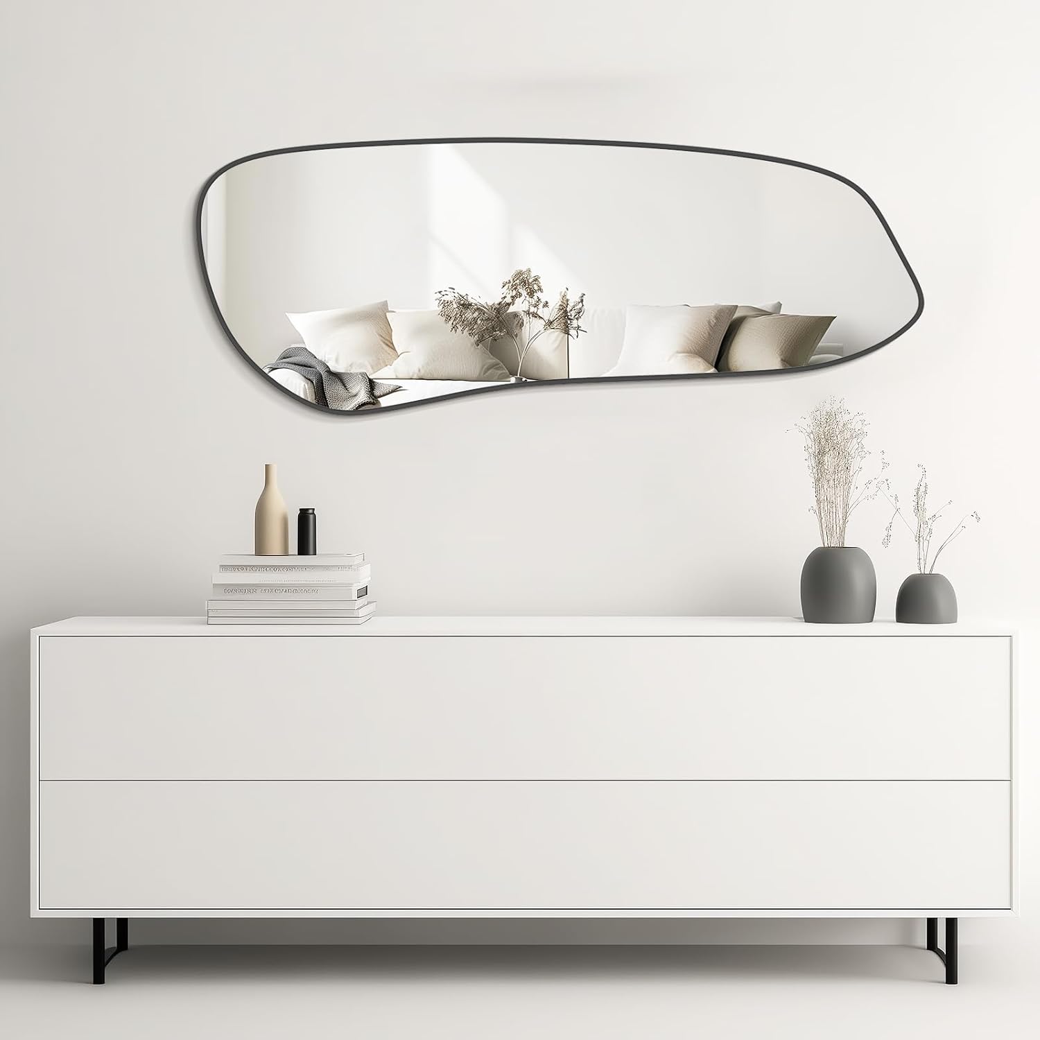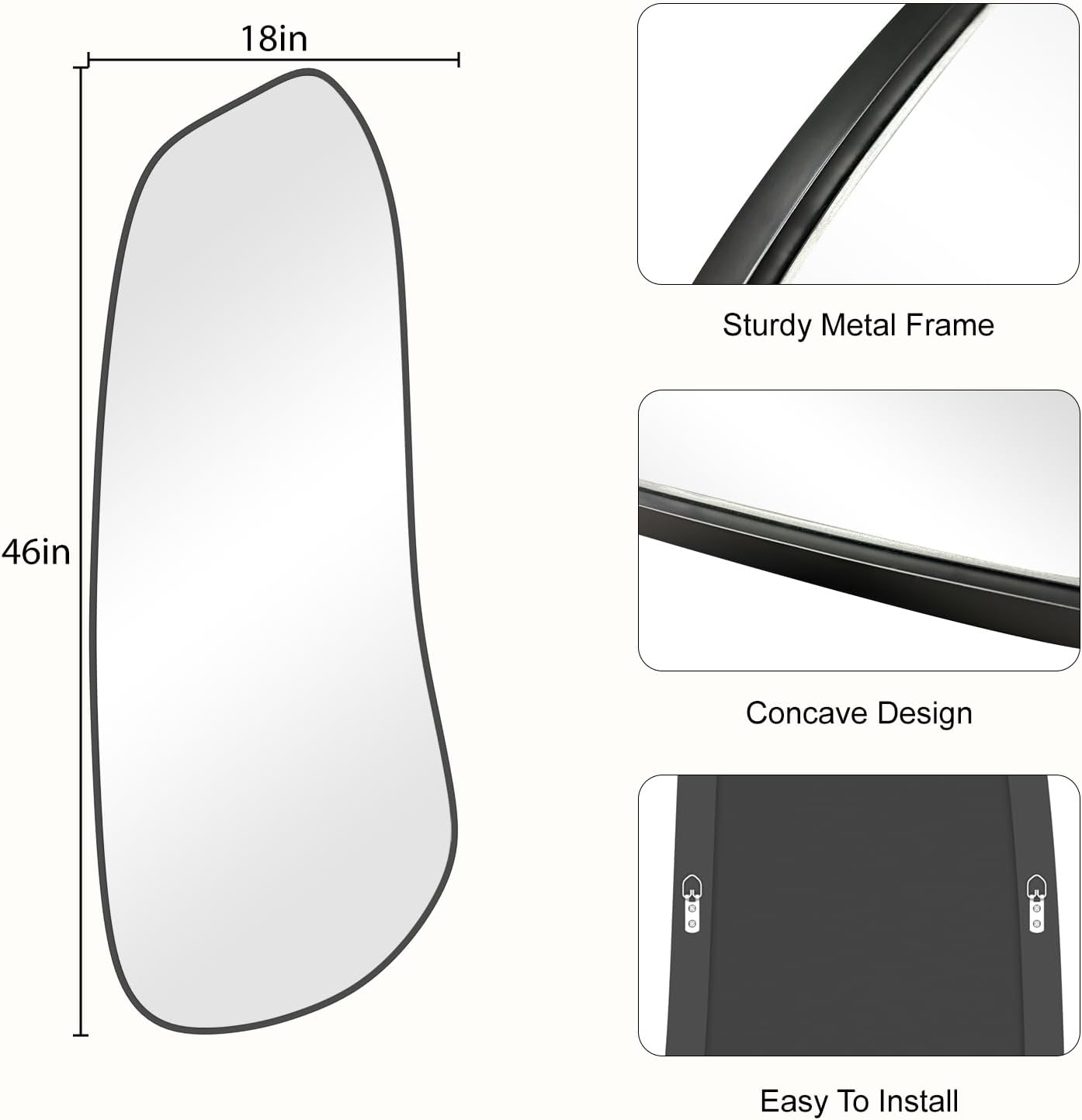 WallBeyond Irregular Wall Mirror, Asymmetrical Mirror Wall Mounted with Black Framed for Living Room, Bathroom, Bedroom, Entryway Wall Decor, 46"×18", Black