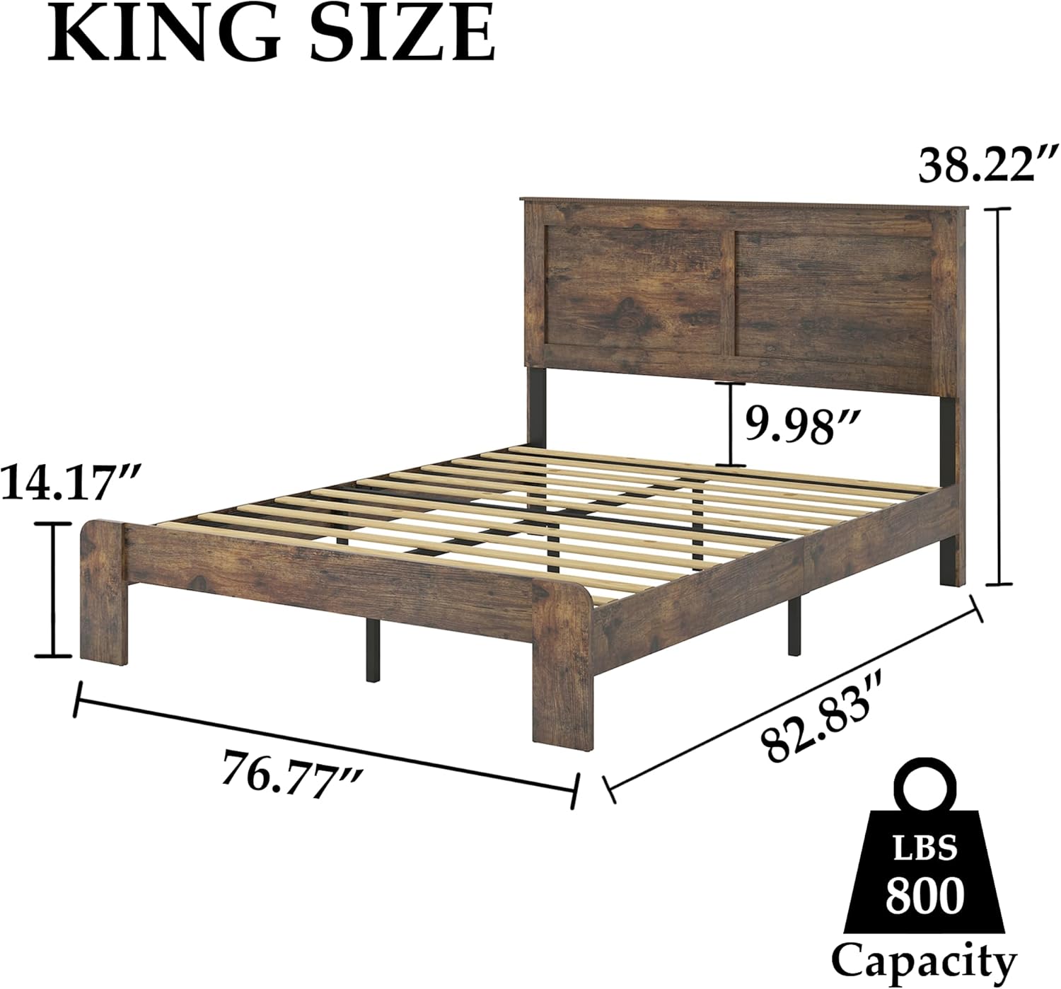 Wood Platform Bed Frame, King Bed Frame with Headboard and Wood Slat Support, Noise-Free,Easy Assembly, No Box Spring Needed, Dark Brown