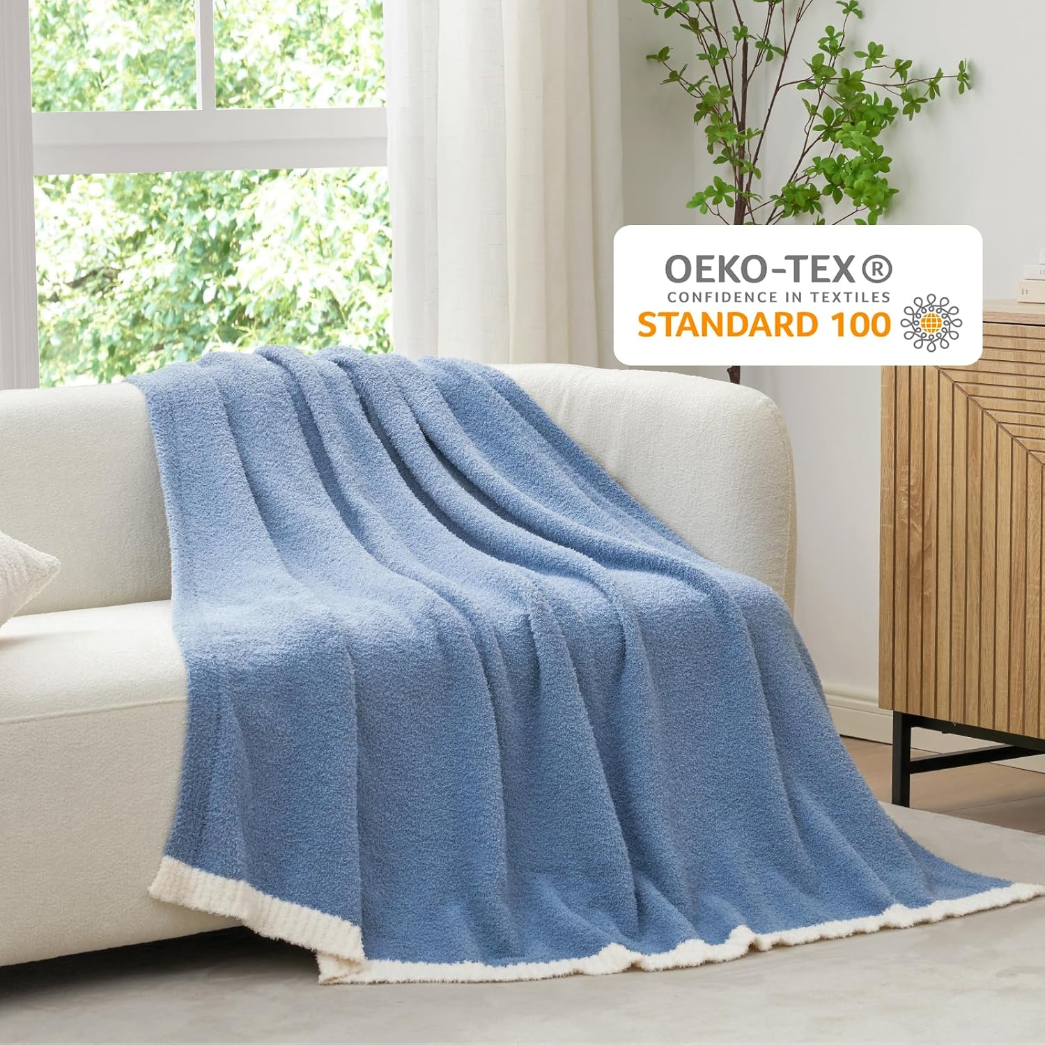 Snuggle Sac Blue Throw Blanket for Couch Bed Sofa 60x80 inches, Reversible Blue Blanket Microfiber Fluffy Fuzzy Cozy Knit Twin Blanket for Women Mothers Birthday Gifts