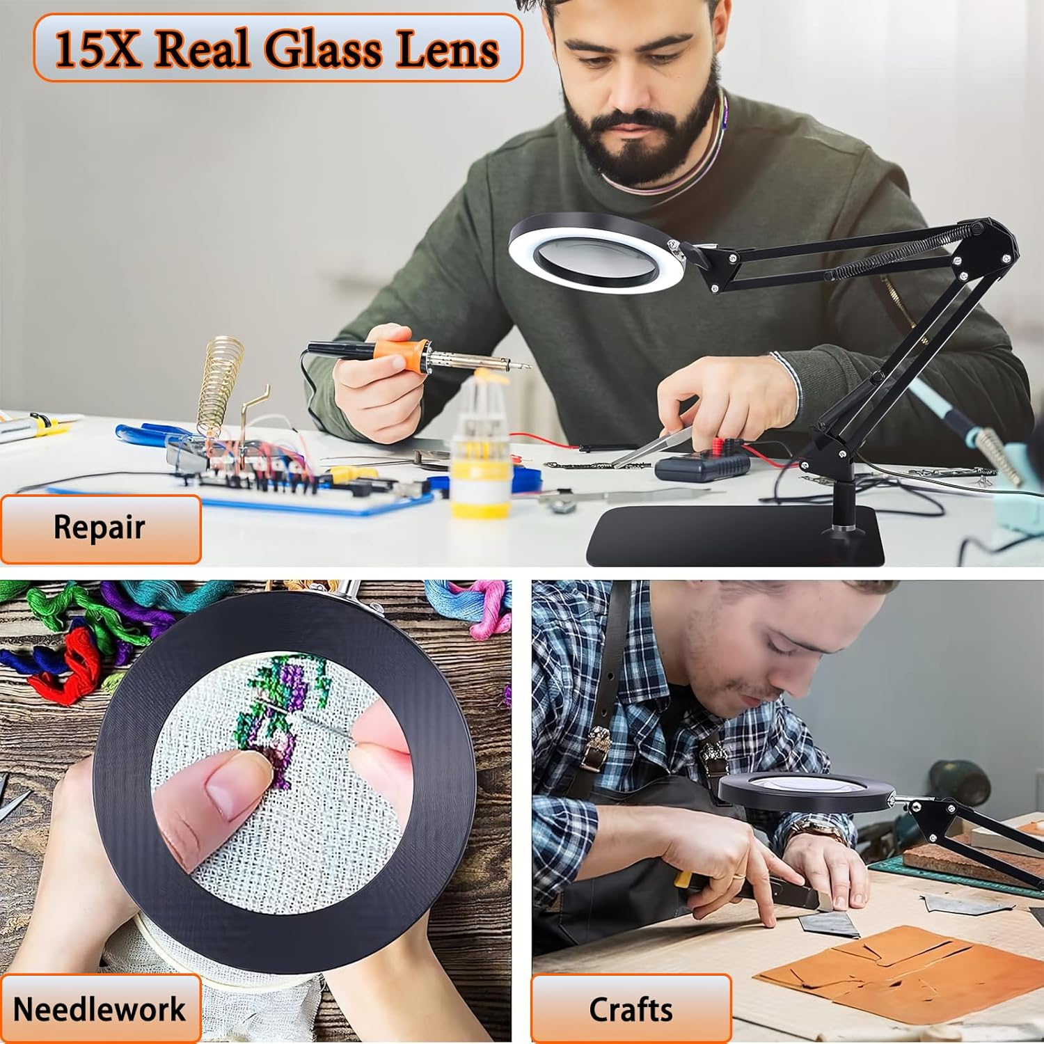 - 【15X High-Definition Magnification】This magnifying glass features a 15X optical lens magnification, providing crystal-clear views for detailed tasks. Perfect for reading small print, manual work, crafting, viewing instructions, and more. The lens ensures no dizziness or distortion, making it a great tool for extended use, especially for individuals with poor eyesight.