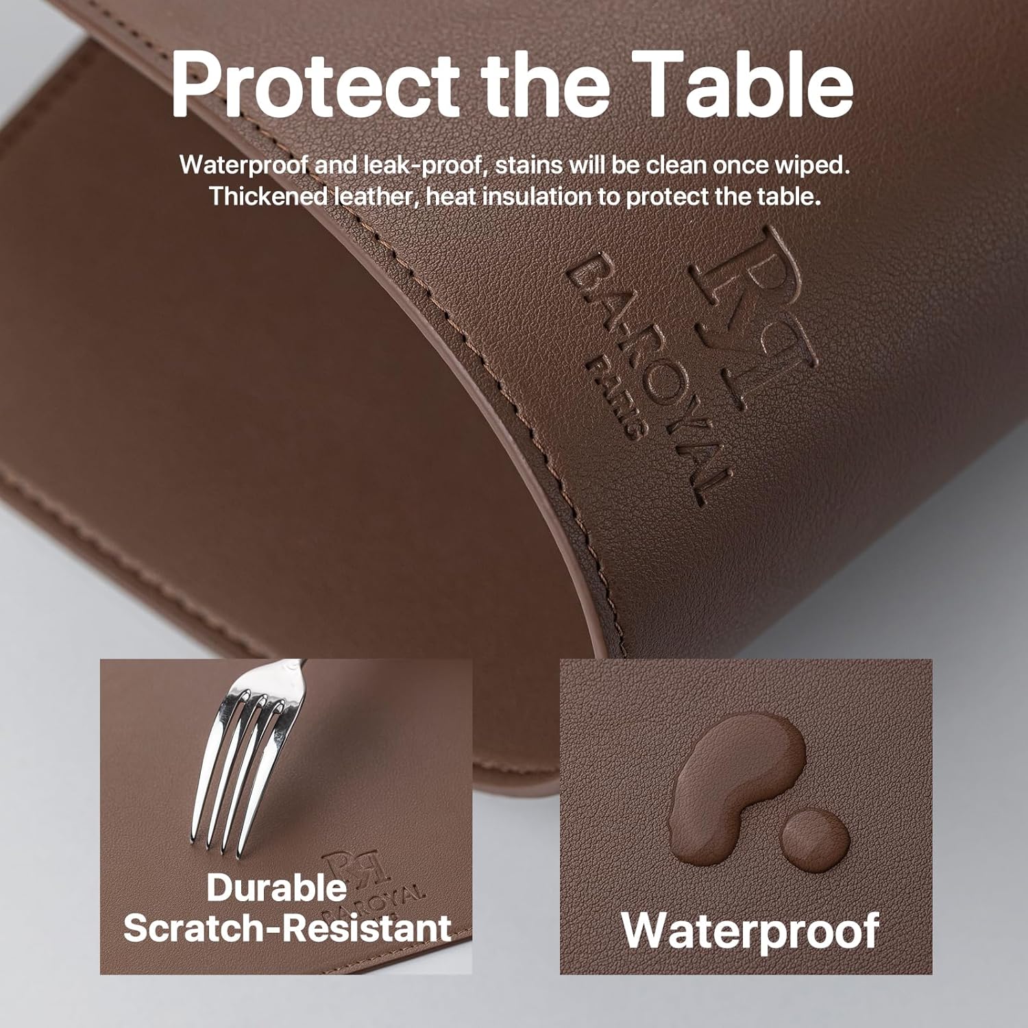 - Luxury You Can See and Feel: Made from premium, heavy-duty materials, these placemats are built to last. The neutral color of the leather enhances the elegance of any dining setting. The 3mm thickness ensures durability and resistance to tearing, fraying, and curling, offering lasting protection for your table and maintaining their elegant appearance for years.