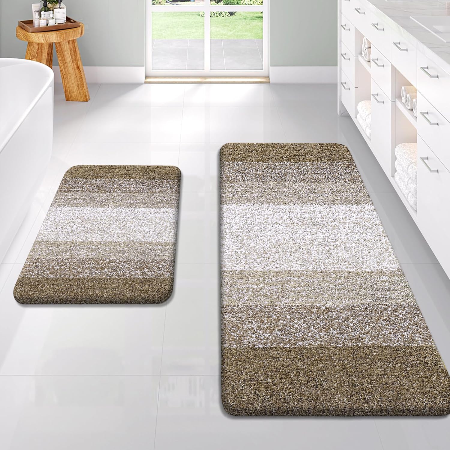 OLANLY Bathroom Rug Set 2 Piece, Soft Absorbent Microfiber Bath Rug Set, Non-Slip, Machine Wash Dry, Plush Shaggy Bath Mats for Bathroom (47"x20"+24"x16", Coffe)