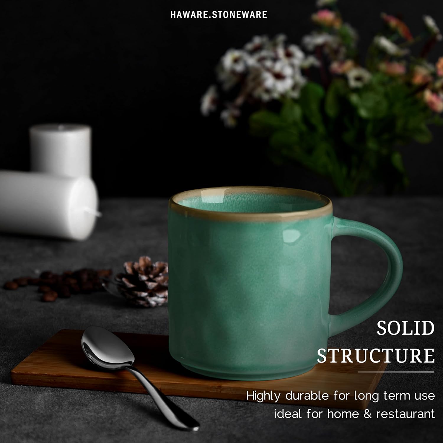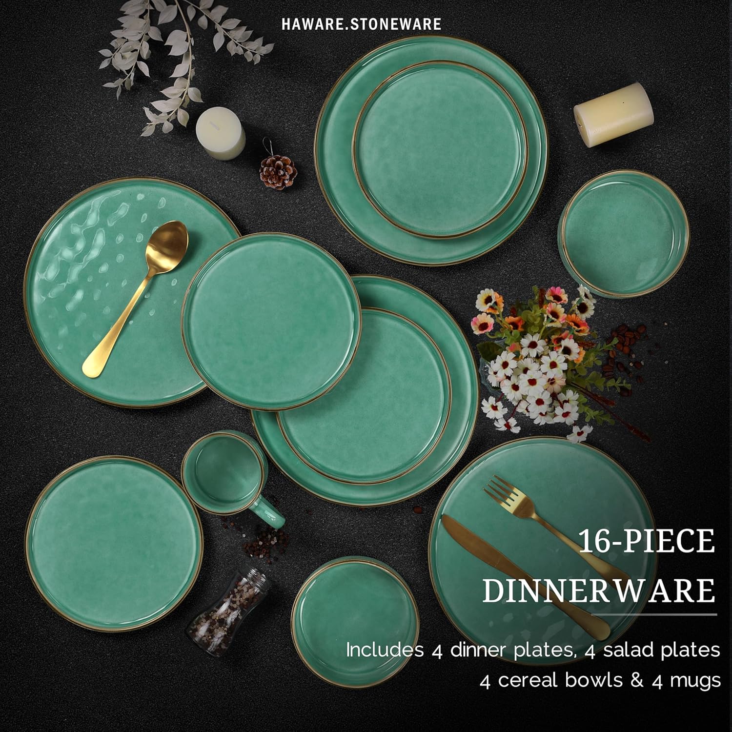 HaWare Dinnerware Sets, 16-Piece Stoneware Plates and Bowls Set, Elegant Ceramic Dish Set for 4, Chip and Scratch Resistant, Microwave and Dishwasher Safe, Reactive Green