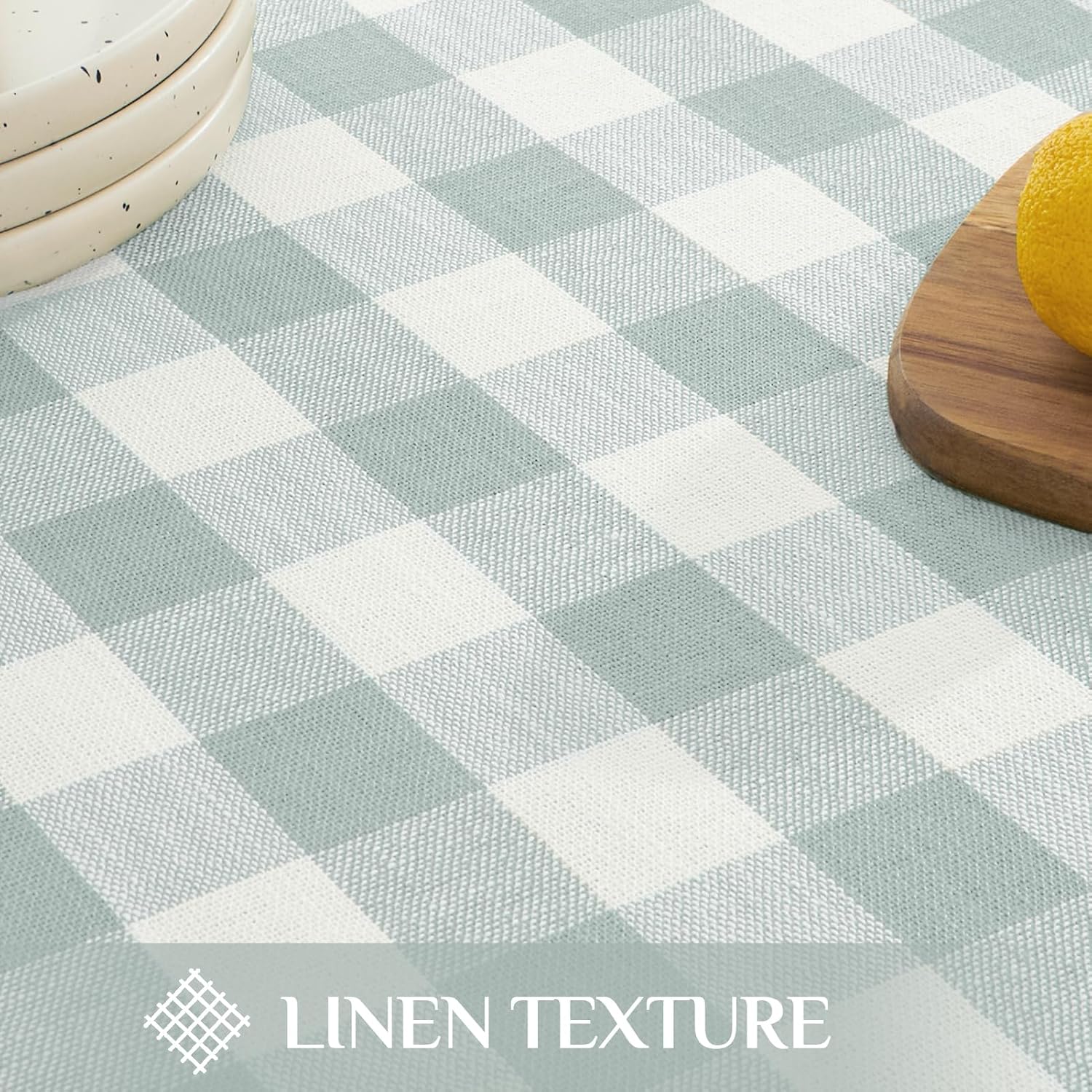 • PREMIUM FABRIC AND CRAFTSMANSHIP: Made from soft, luxurious linen cotton, this plaid tablecloth is non-slip, wrinkle-resistant, and highly durable. It effectively protects your table while offering a beautiful drape for an elegant and polished look.