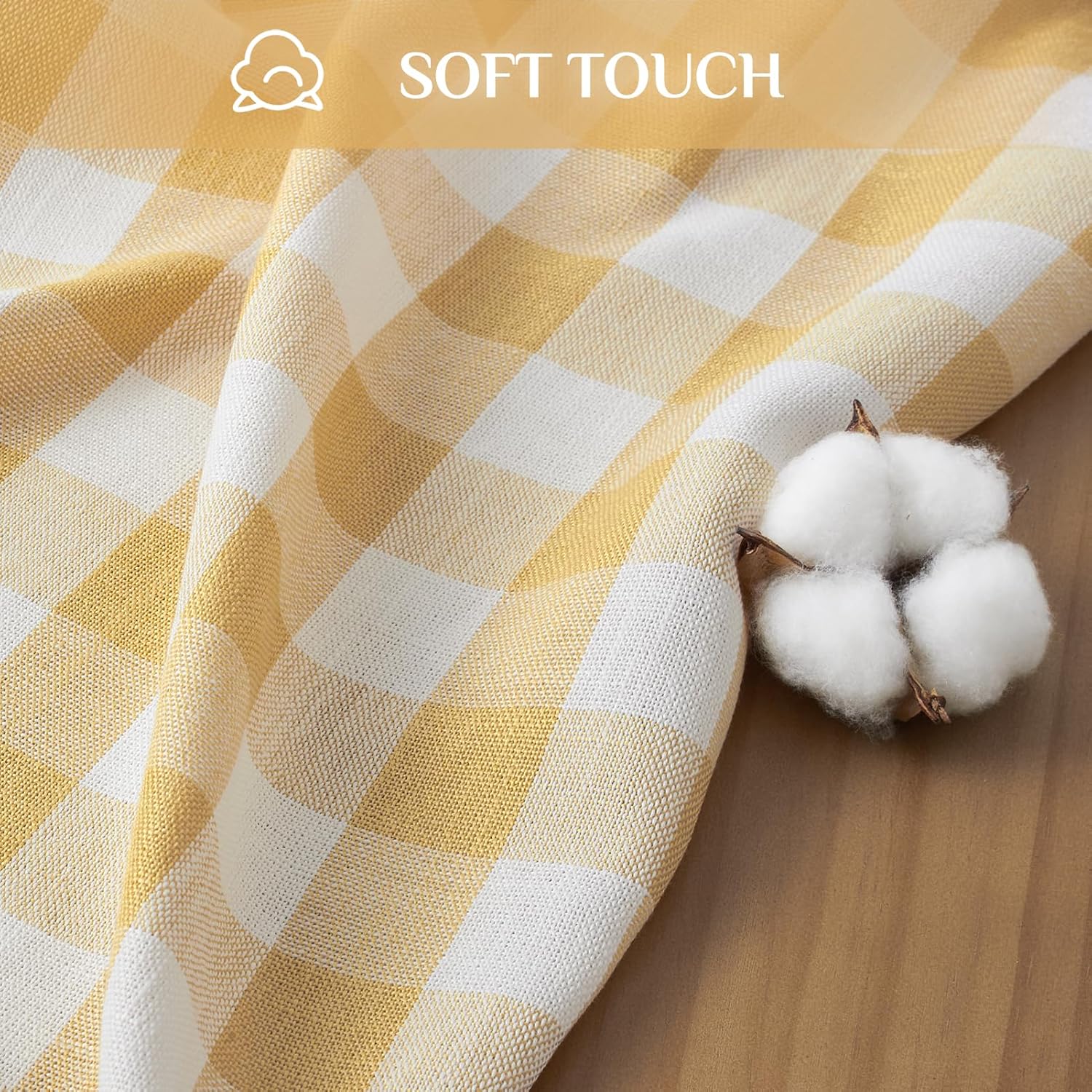 • CLASSIC GINGHAM TABLECLOTH WITH TASSELS: Featuring the timeless yellow and white buffalo check pattern with playful tassel fringe, this tablecloth blends rustic, farmhouse charm and modern elegance to create a cozy, inviting dining atmosphere.