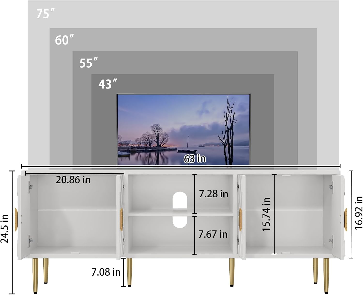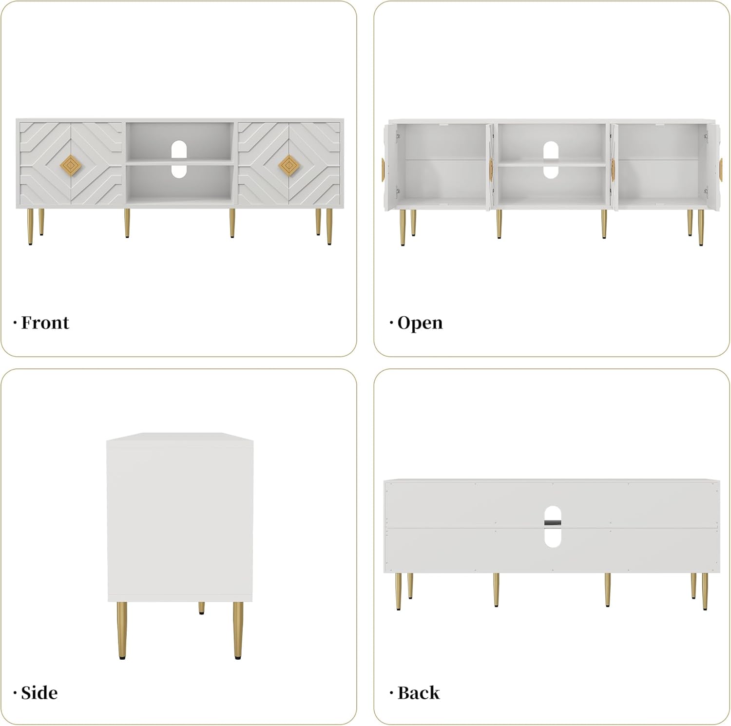 - 【Sturdy and Safe】This tv stands for living room is made of P2 class MDF boards and lead-free environmentally friendly paint. The special waterproof coating makes the surface smooth for easy cleaning. The 6 heavy-duty gold legs are made of solid wood for added weight-bearing capacity.