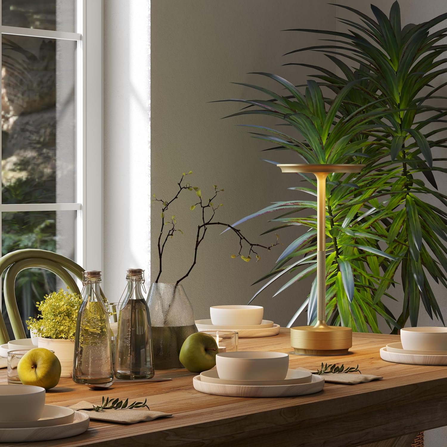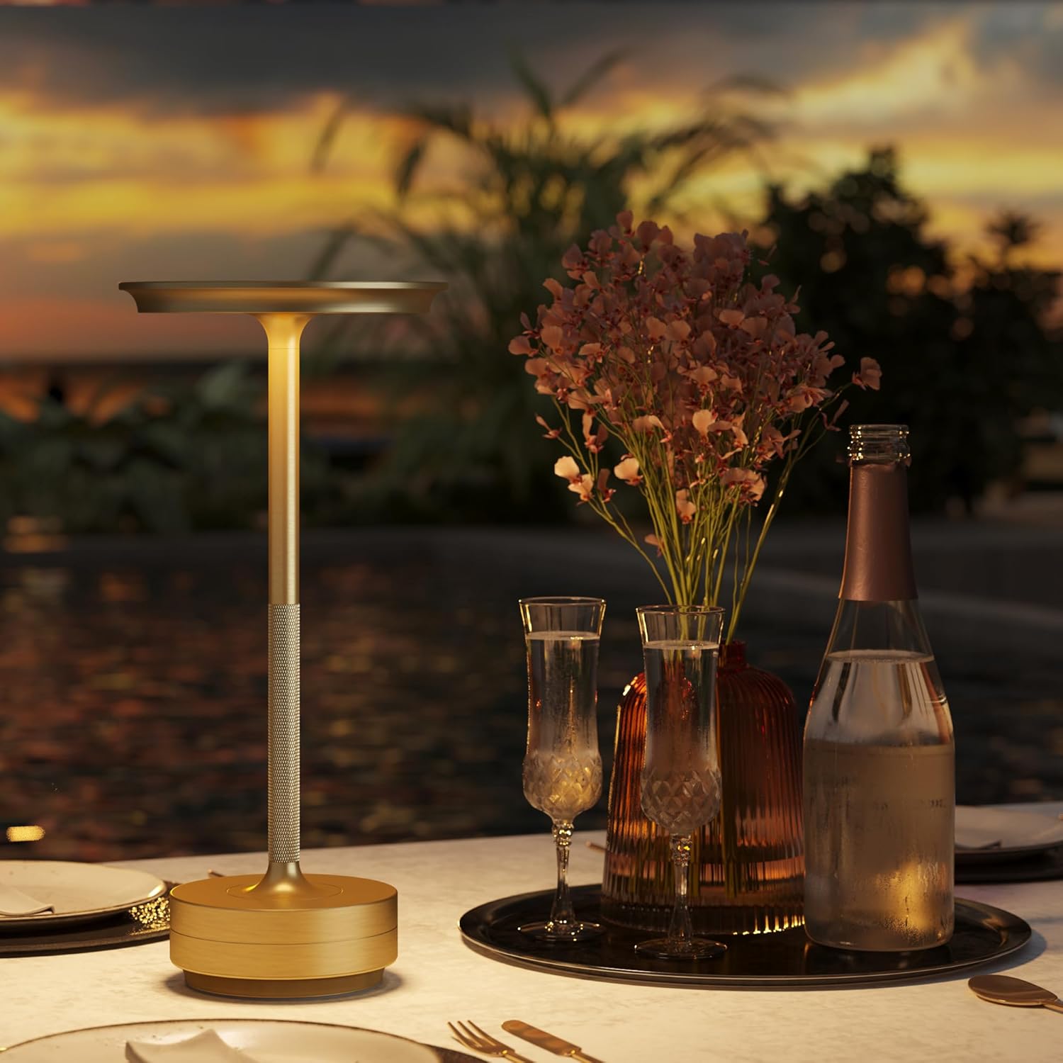 Cordless LED Table Lamp,Portable Rechargeable USB-C Battery Operated Table Lights IP54 Waterproof 3 Levels Brightness Light with Memory Function,for Terrace, Western Restaurant, Cafe(Gold)