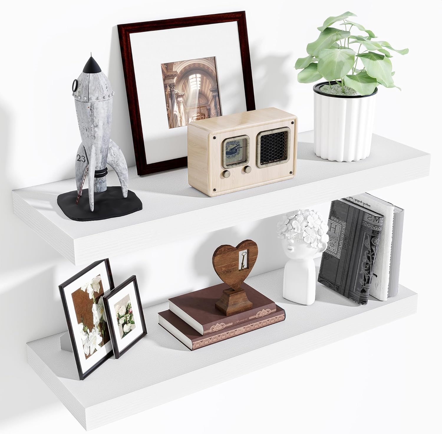 - VERSATILE WALL SHELVES: This 32 inches floating shelf is a versatile solution for any room in your home. Whether used in the living room, bedroom, office, or kitchen, it can be styled to suit various purposes, from displaying art to organizing everyday items. Perfect for enhancing any decor