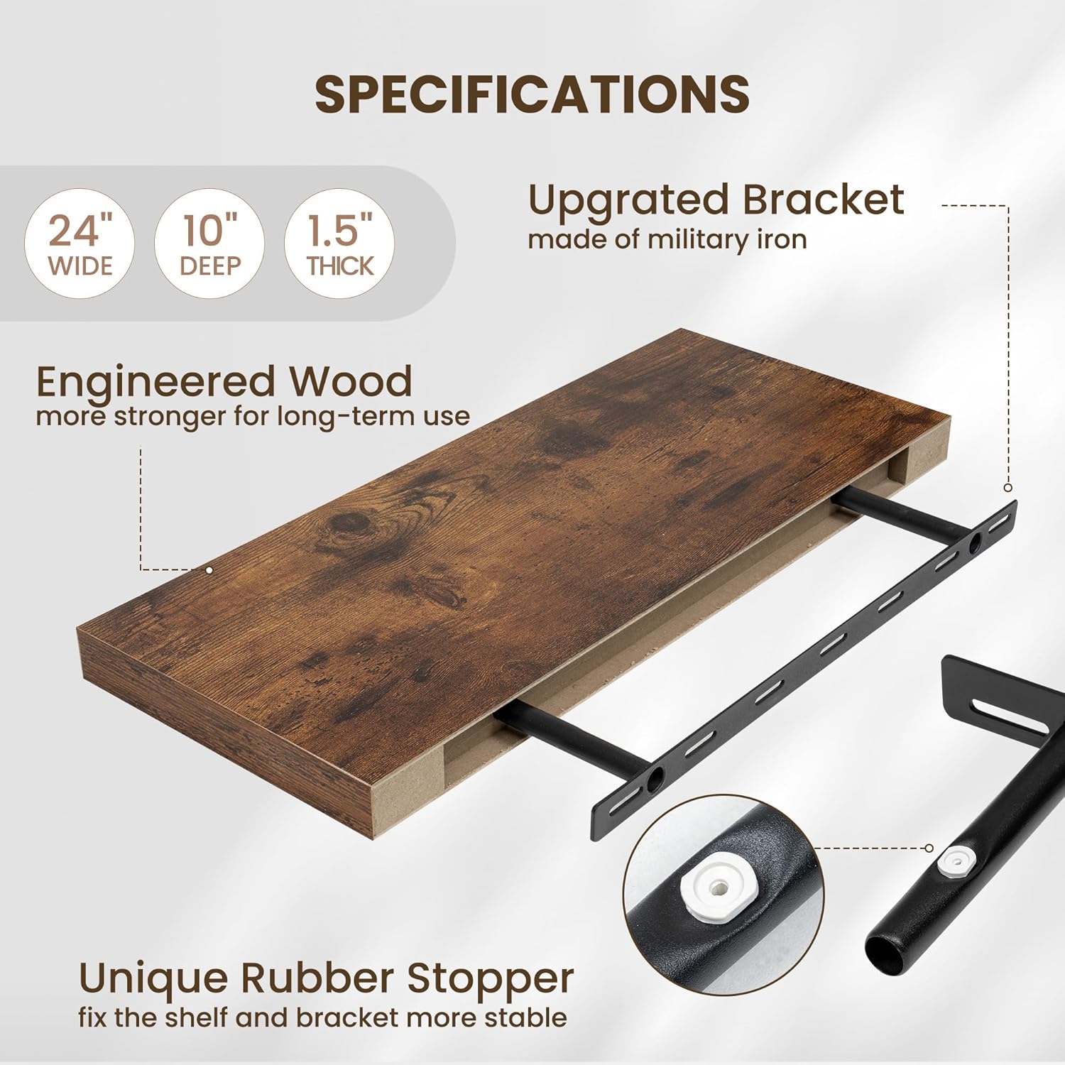 Fun Memories 24 Inch Floating Shelves Wall-Mounted, 10 Inch Deep Wall Shelves, 24 x 10 Floating Shelf for Living Room Bathroom Bedroom, Rustic Brown, Set of 2