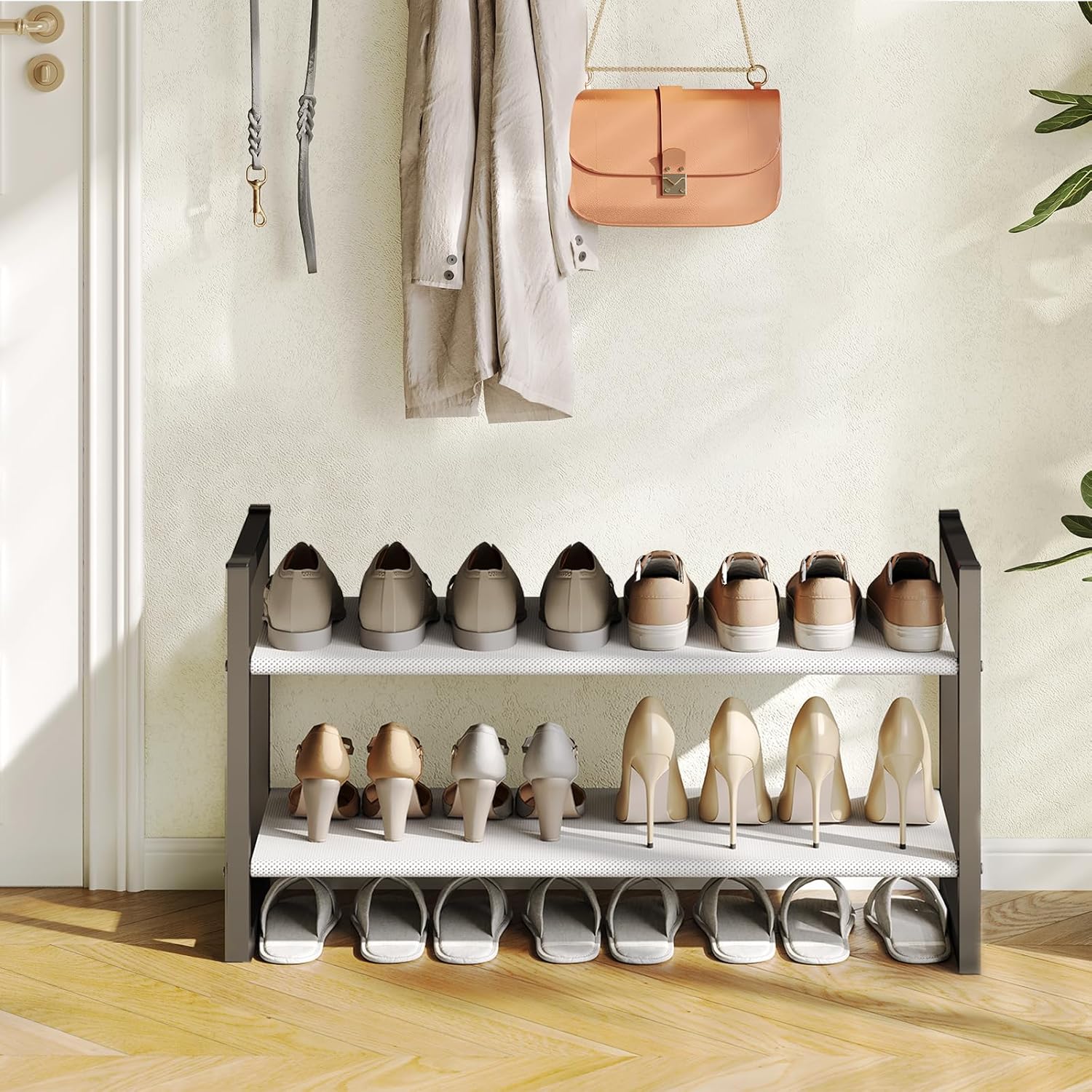 2-Tier Shoe Organizer Rack, Adjustable Non-Woven Fabric & Metal, Sturdy Shoe Shelf for Closet, Entryway & Bedroom