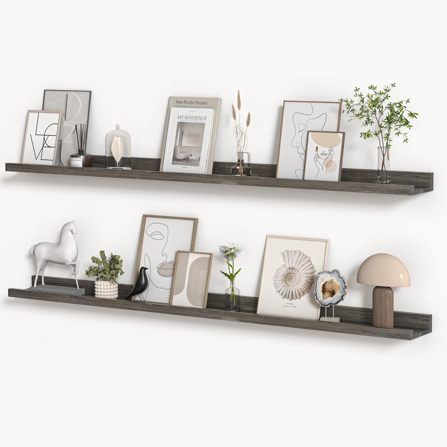 • Quick and Easy Installation: With pre-drilled holes, necessary hardware, and easy-to-follow instructions, our picture ledge shelves are a breeze to install. Each set even comes with a mini level for perfect alignment. Put them up in minutes and start decorating right away!