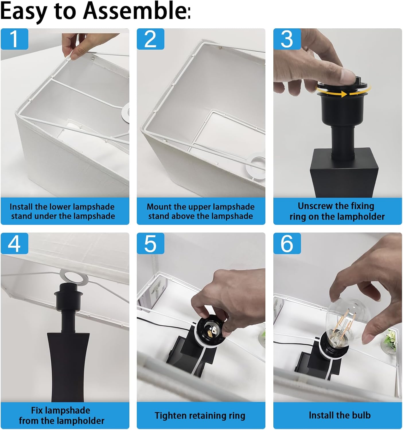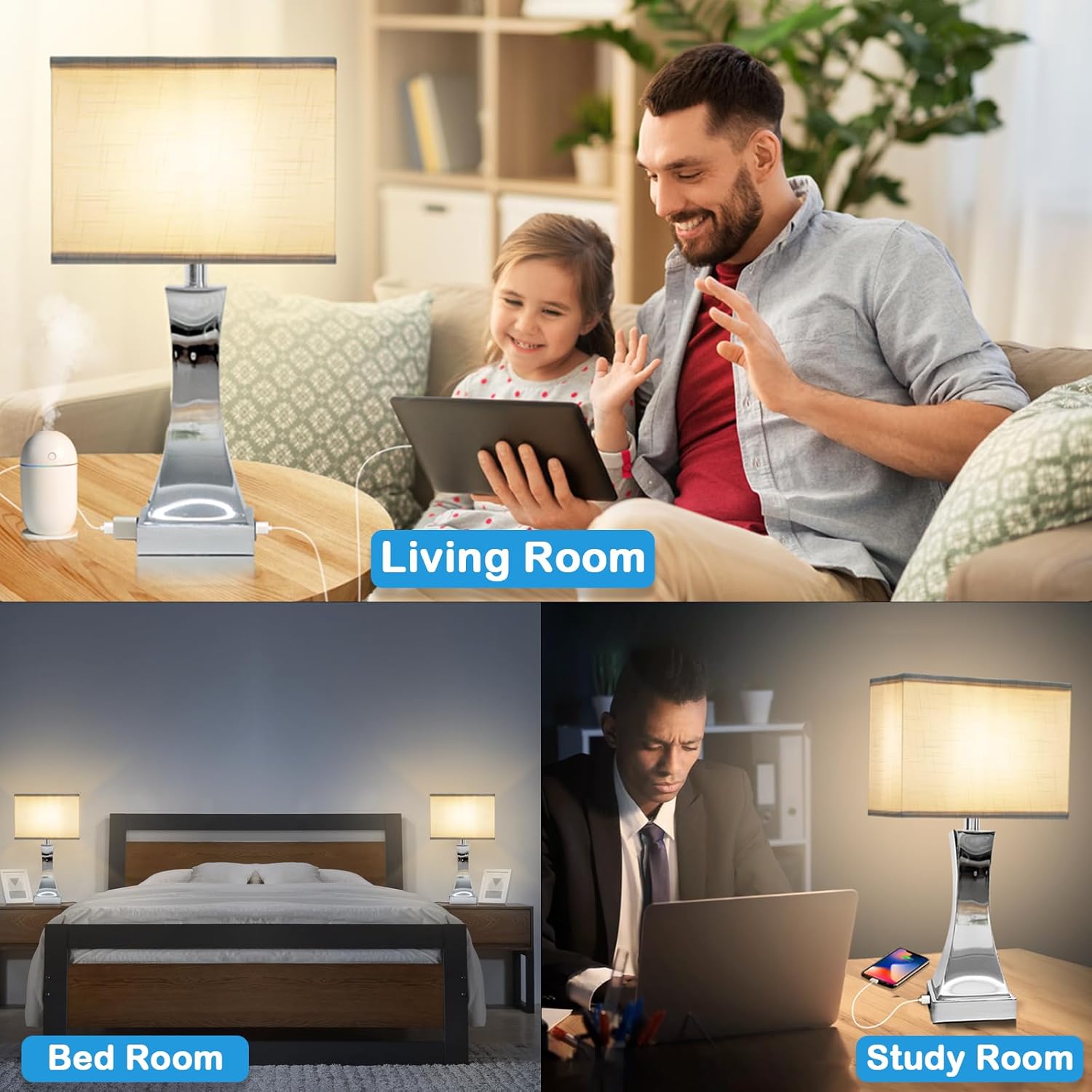 - 【MINIMALIST STYLE DESIGN】The table lamp for living room is made of high quality electroplated white chrome crafted lamp body and white linen shade, which is not only beautiful but also durable. It is suitable for any space, such as bedroom, office, hotel, baby room, guest room and so on. The base of the table lamp is specially weighted and equipped with non-slip pads to prevent tipping, sliding or moving.PS: (the lampshade needs to be assembled and can be completed in 2 minutes)