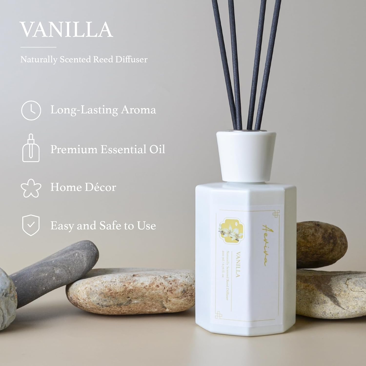 Reed Diffuser Set, 6.7 oz Vanilla Scented Reed Diffusers for Home with Sticks, Home Fragrance Oil Scent Diffuser for Bathroom, Decor & Gift