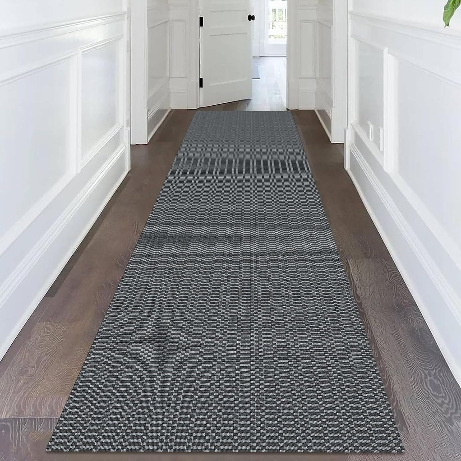 - Color Variation Notice: This rug blends charcoal grey and dark grey for a dark look that complements various decor styles. The image makes this look like a plain carpet, but it's actually a two-tone checkerboard design