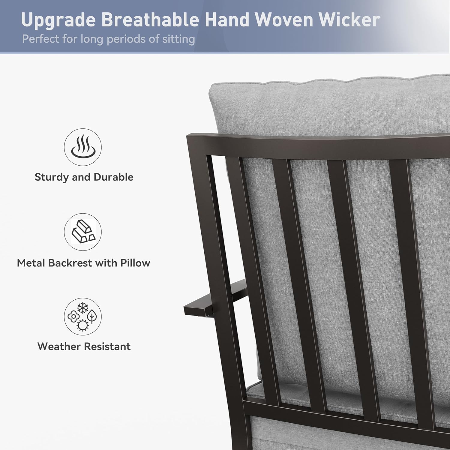 - Upgrade Chair: The main material of the chair is metal tube and rattan. The rattan is hand-woven to withstand multiple seasons of use. We have two types of chairs to choose from, rattan dining chair and metal dining chair. You can buy different combinations according to your preference. The chair's backrest is ergonomically designed for comfort as you enjoy the outdoors