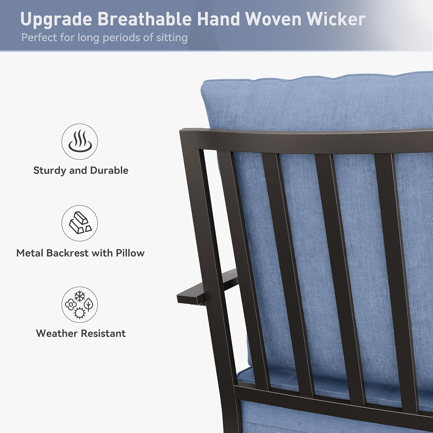 - Upgrade Chair: The main material of the chair is metal tube and rattan. The rattan is hand-woven to withstand multiple seasons of use. We have two types of chairs to choose from, rattan dining chair and metal dining chair. You can buy different combinations according to your preference. The chair's backrest is ergonomically designed for comfort as you enjoy the outdoors