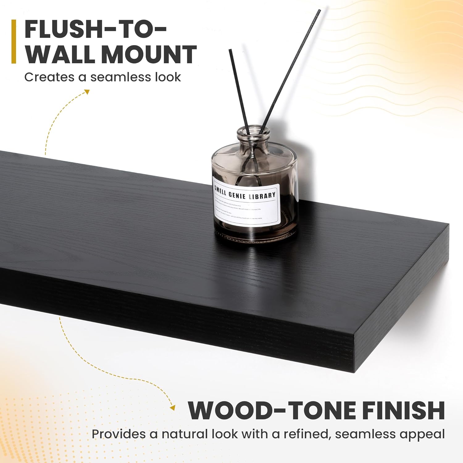 - [ROBUST & SECURE MOUNTING]: Equipped with a sturdy, hidden mounting bracket, these 36-inch floating shelves ensure solid support for your items. Designed for easy and secure installation, they come with all necessary hardware for a firm, wobble-free setup, allowing you to confidently display decor, photos, or functional items with style.