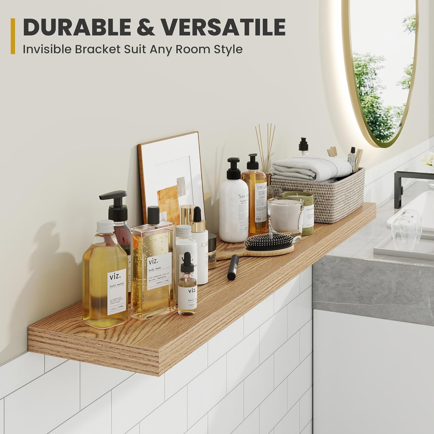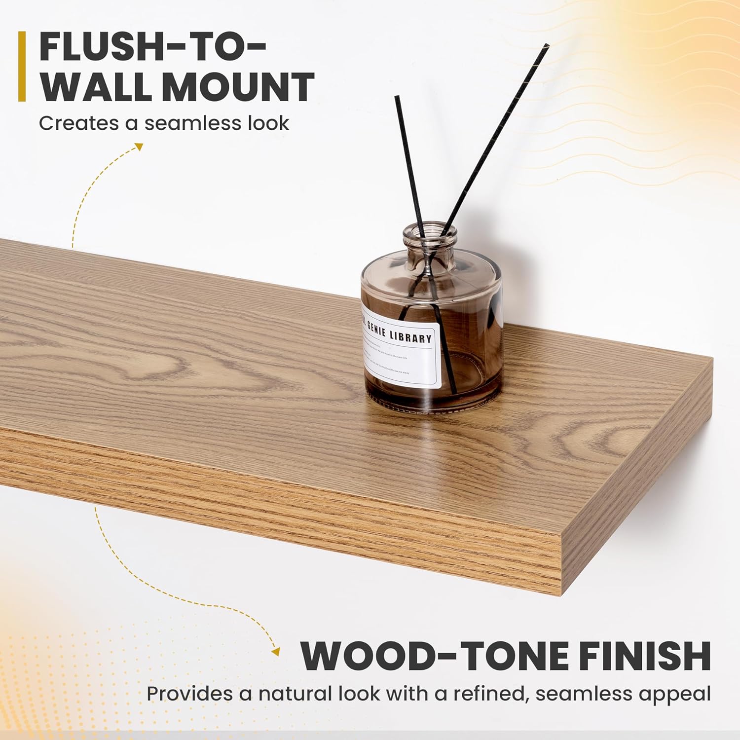 - [QUICK INSTALLATION WITH DETAILED GUIDES]: Our floating shelves include all mounting hardware and a comprehensive guide, enabling quick setup in under 10 minutes. Follow the step-by-step instructions to enjoy these beautiful shelves effortlessly, instantly upgrading your living space.