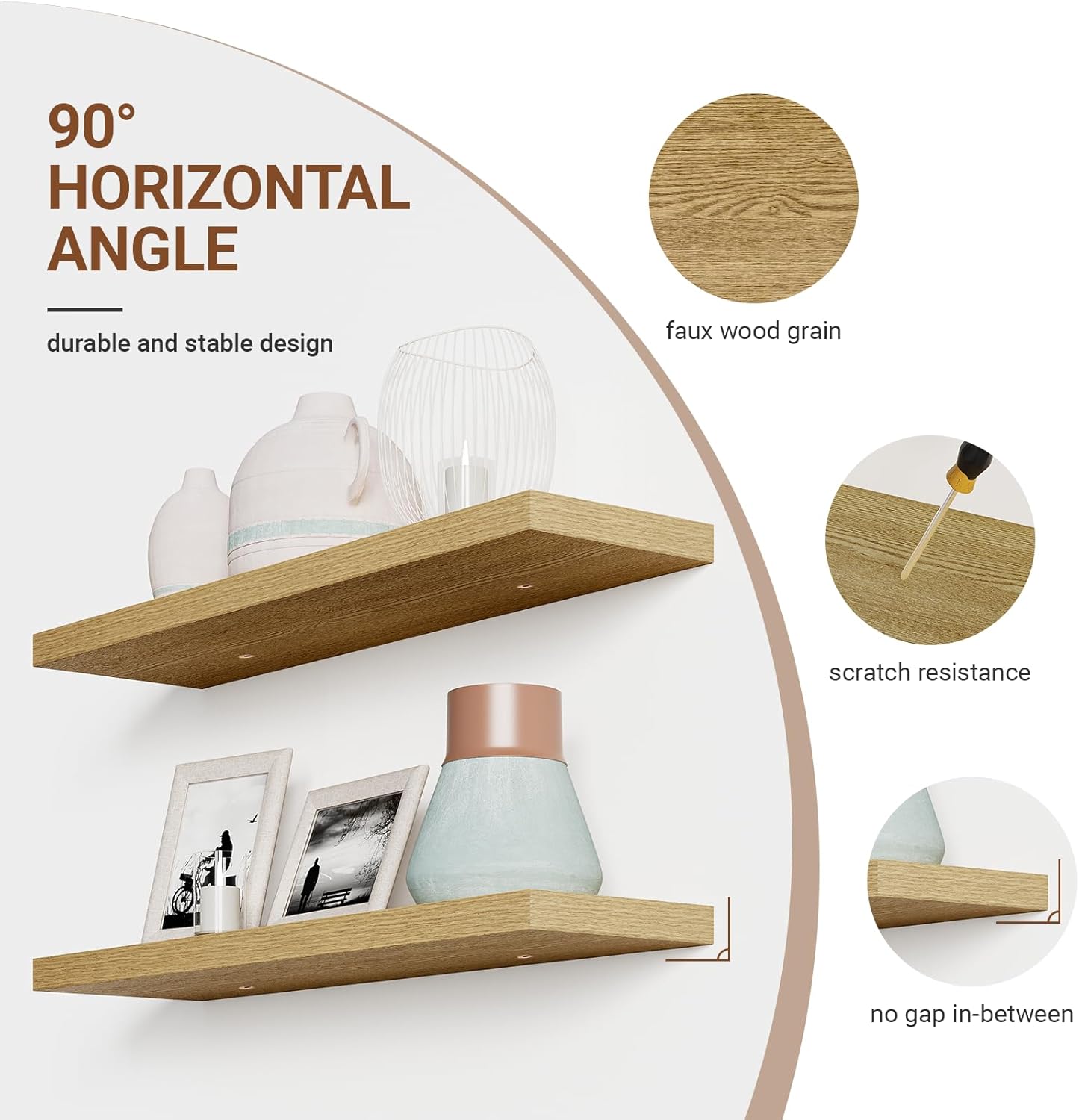Heimlove 32 Inch Floating Shelves for Wall,Oak 9.3" Deep Floating Shelf Set of 2,Wall Mounted Shelves for Bathroom Bedroom Living Room Kitchen Office,Shelf for Books Storage Room,Home Decor
