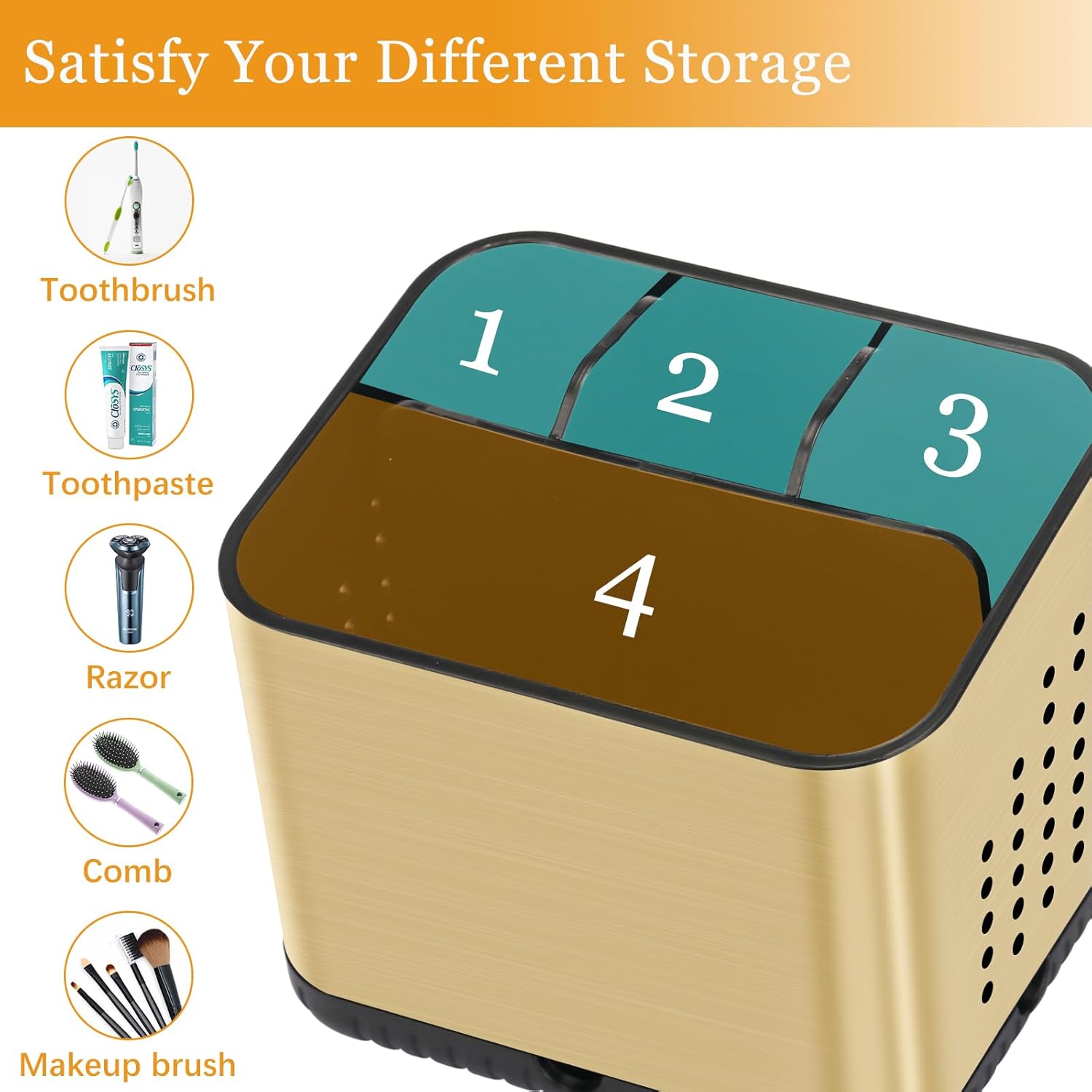 Toothbrush Holders for Bathrooms, Tooth Brush Holder for Bathroom Countertop Organizer, Kids Electric Toothbrush and Toothpaste Holder (Brushed Gold)