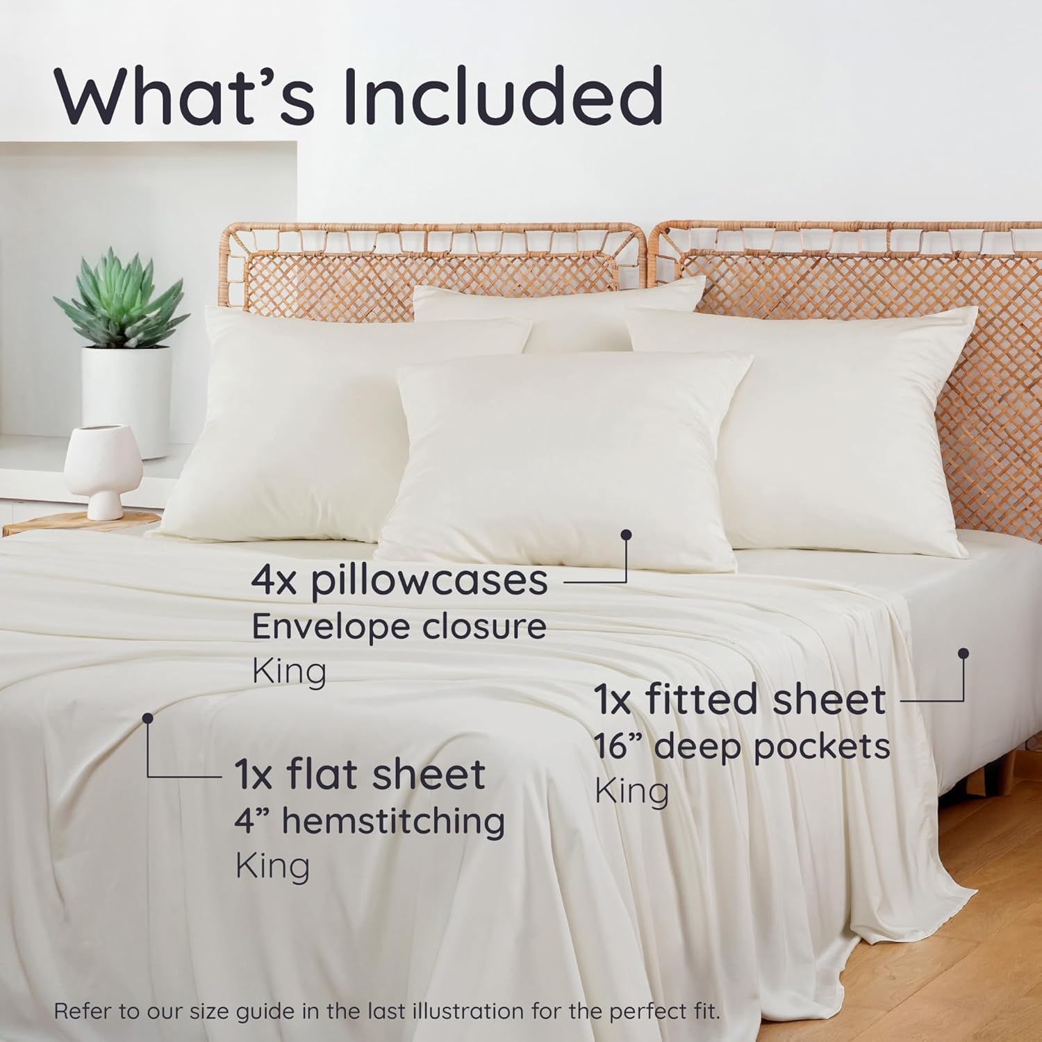 Bambaw King Sheet Set 6pcs – 100% Viscose Derived from Bamboo Sheets King Deep Pocket, Fits Up to 16'' with Elastic Corner Straps, King Cooling Sheets, Hotel Luxury Bed Sheets Set (Ivory)