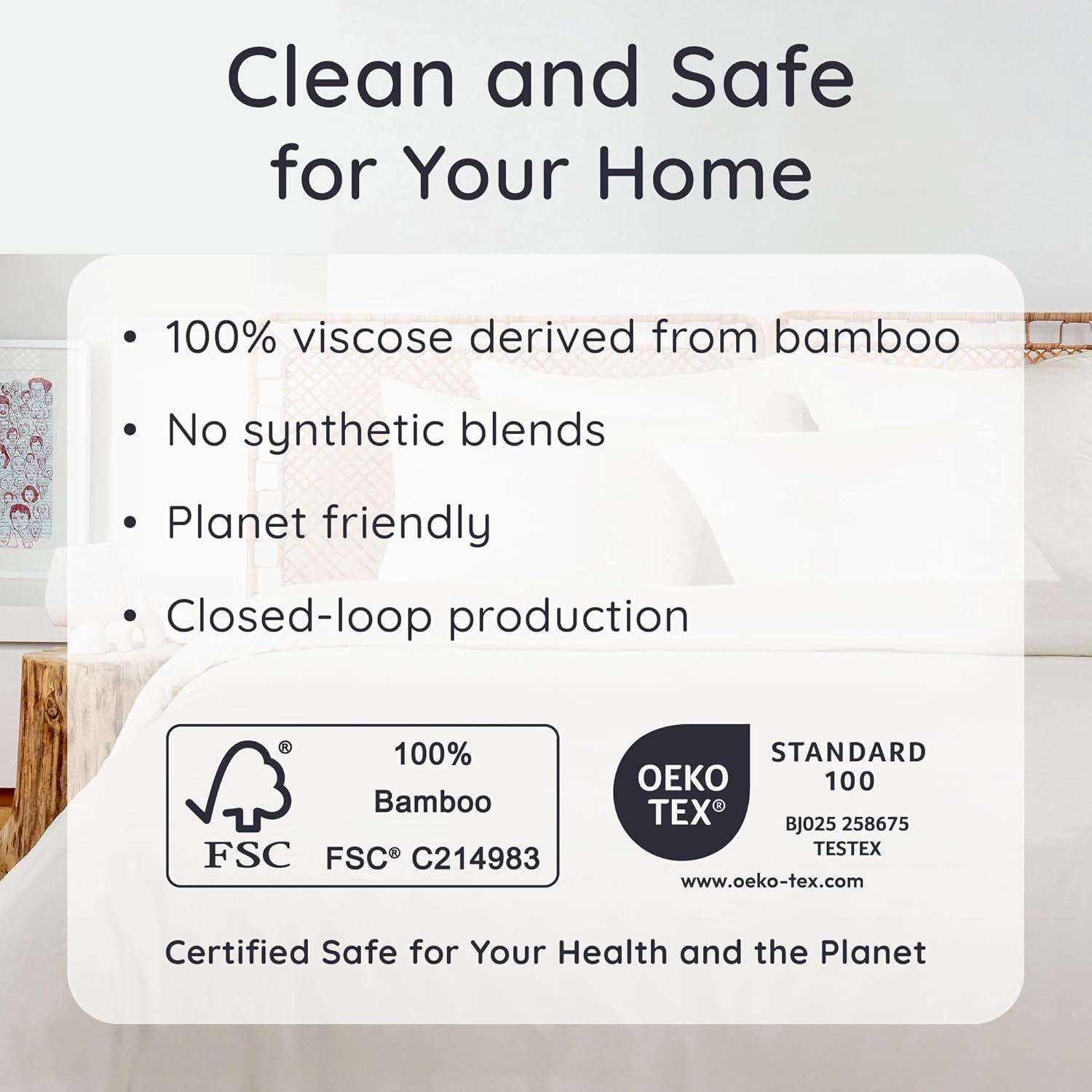 - 100% Viscose Derived from Bamboo: These 100% viscose derived from bamboo sheets deep pocket deliver the purest, most natural luxury. Free from blends with other fabrics or synthetic materials, they are FSC and OEKO-TEX Standard 100 certified, ensuring they are sustainably sourced and as gentle on the environment as they are on your skin.