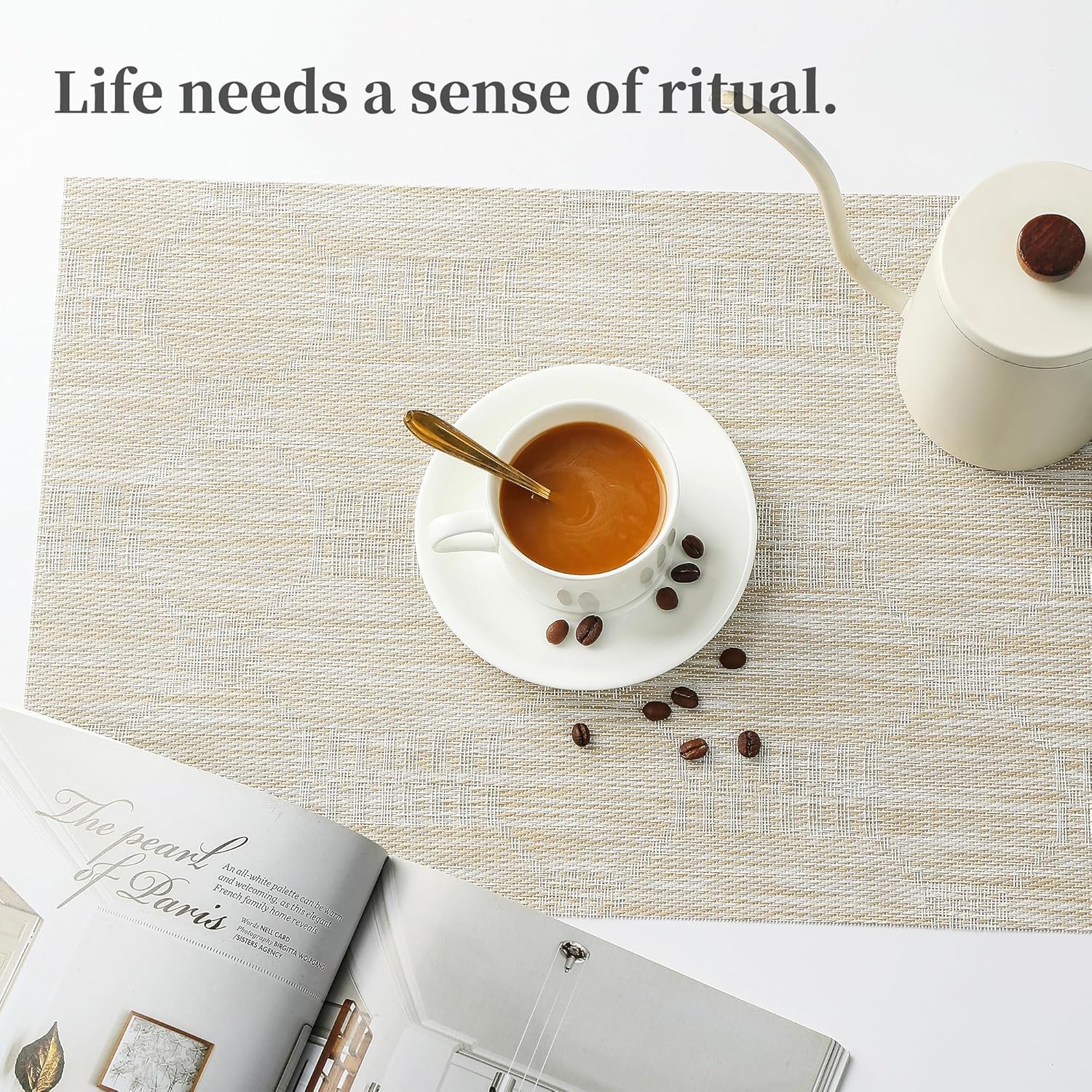 Leetaltree Wheat Placemats Set of 12 - Heat Resistant Non-Slip Place mats for Dining Table, Washable Durable PVC Vinyl Woven Table Mats(Wheat, 12)