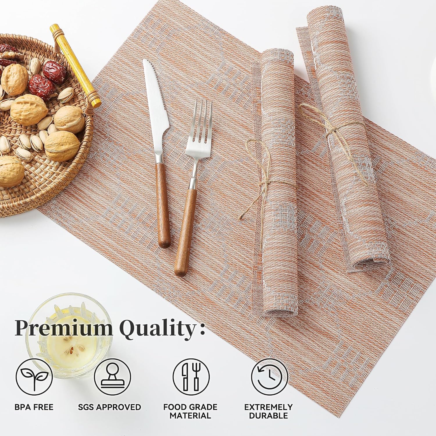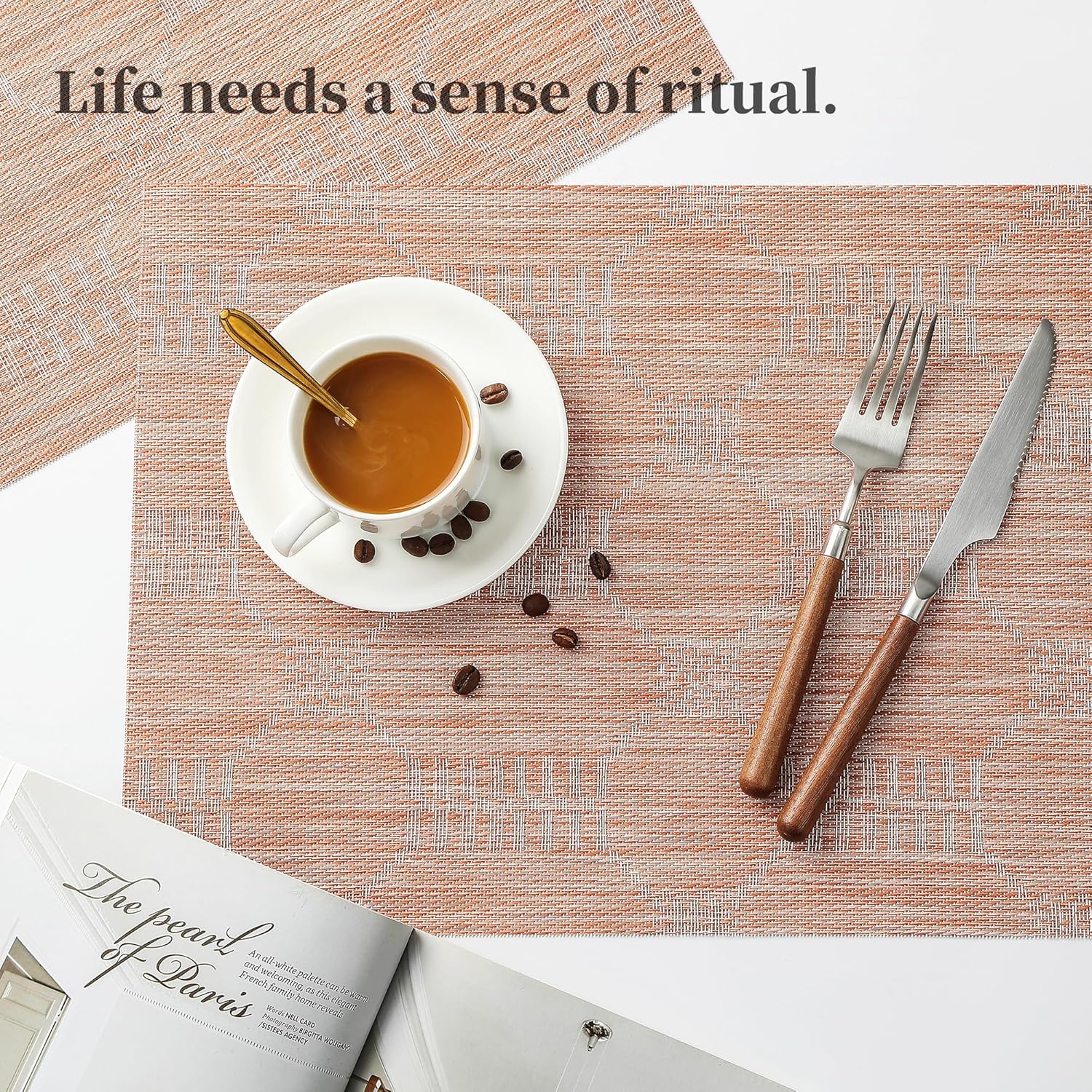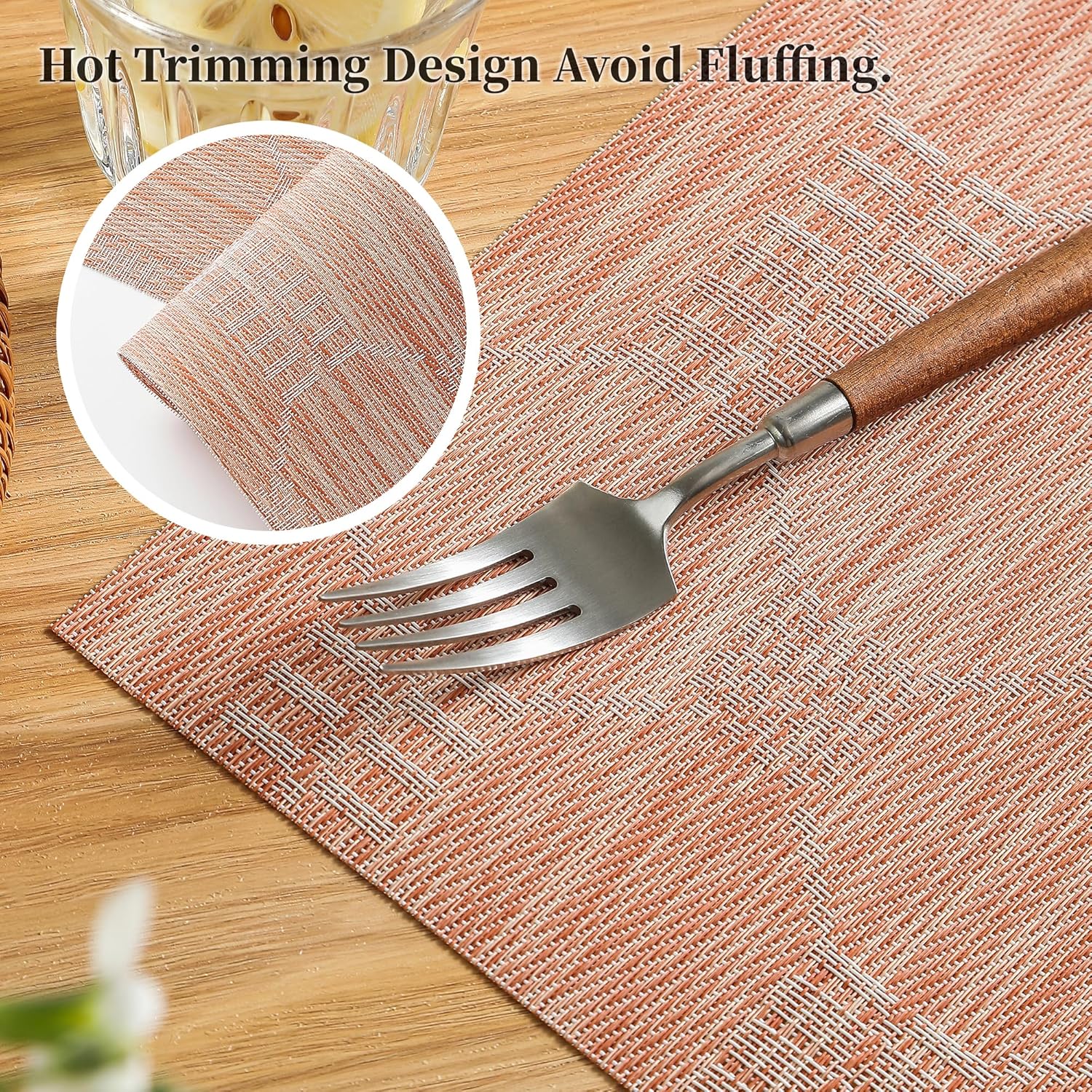 Leetaltree Coral Placemats Set of 12 - Heat Resistant Non-Slip Place mats for Dining Table, Washable Durable PVC Vinyl Woven Table Mats(Coral, 12)