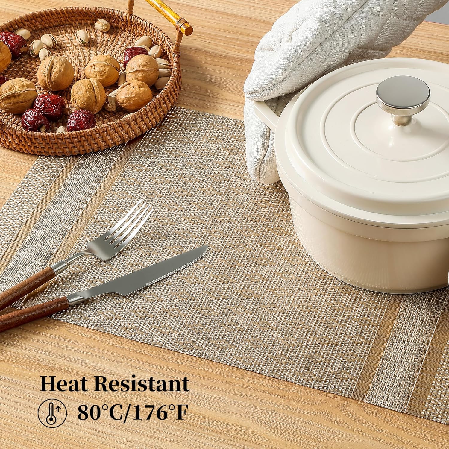 • Protects Your Table: Keep your table safe from scratches and spills with our heat-resistant placemats. They can withstand temperatures up to 176℉(80℃) and help keep food warm. Add style to your dining setting while ensuring table protection