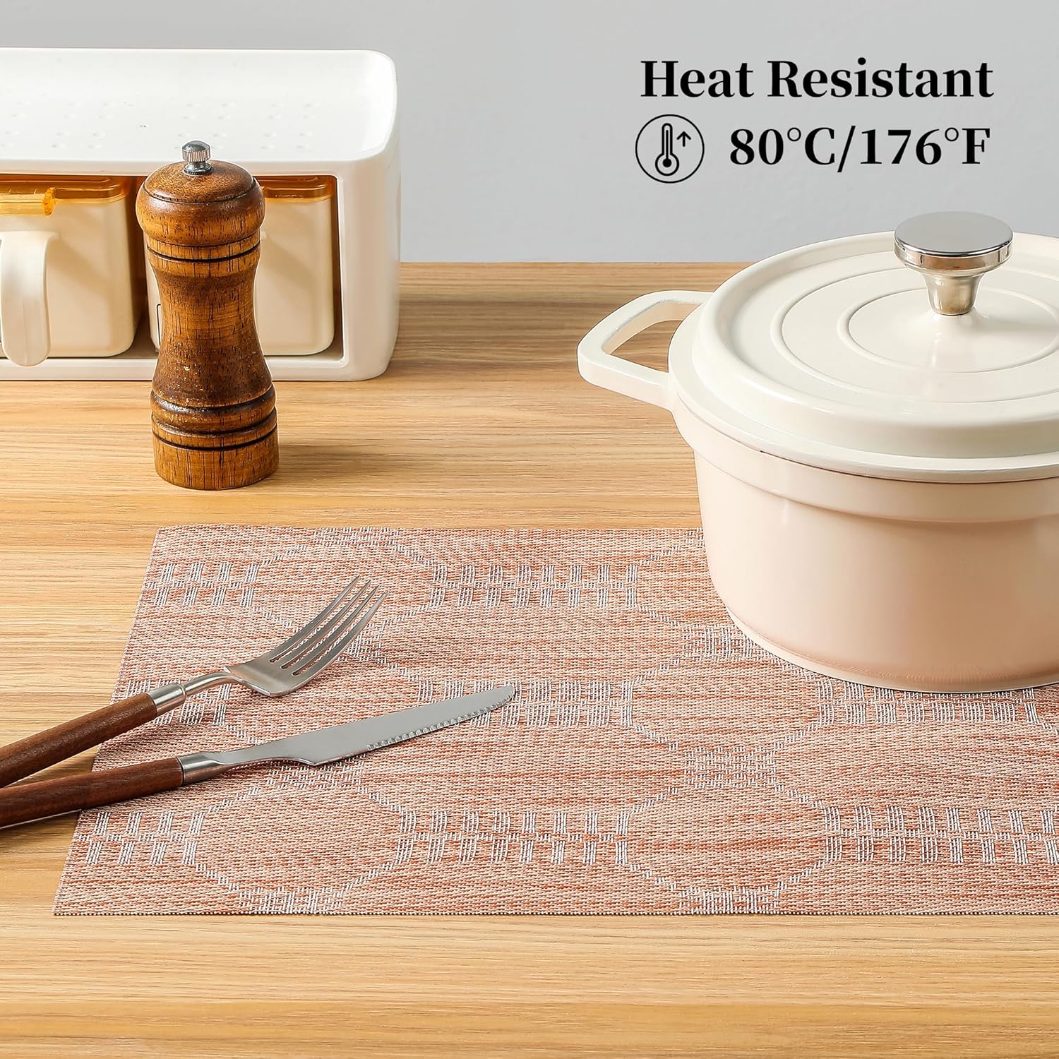 • Protects Your Table: Keep your table safe from scratches and spills with our heat-resistant placemats. They can withstand temperatures up to 176℉(80℃) and help keep food warm. Add style to your dining setting while ensuring table protection