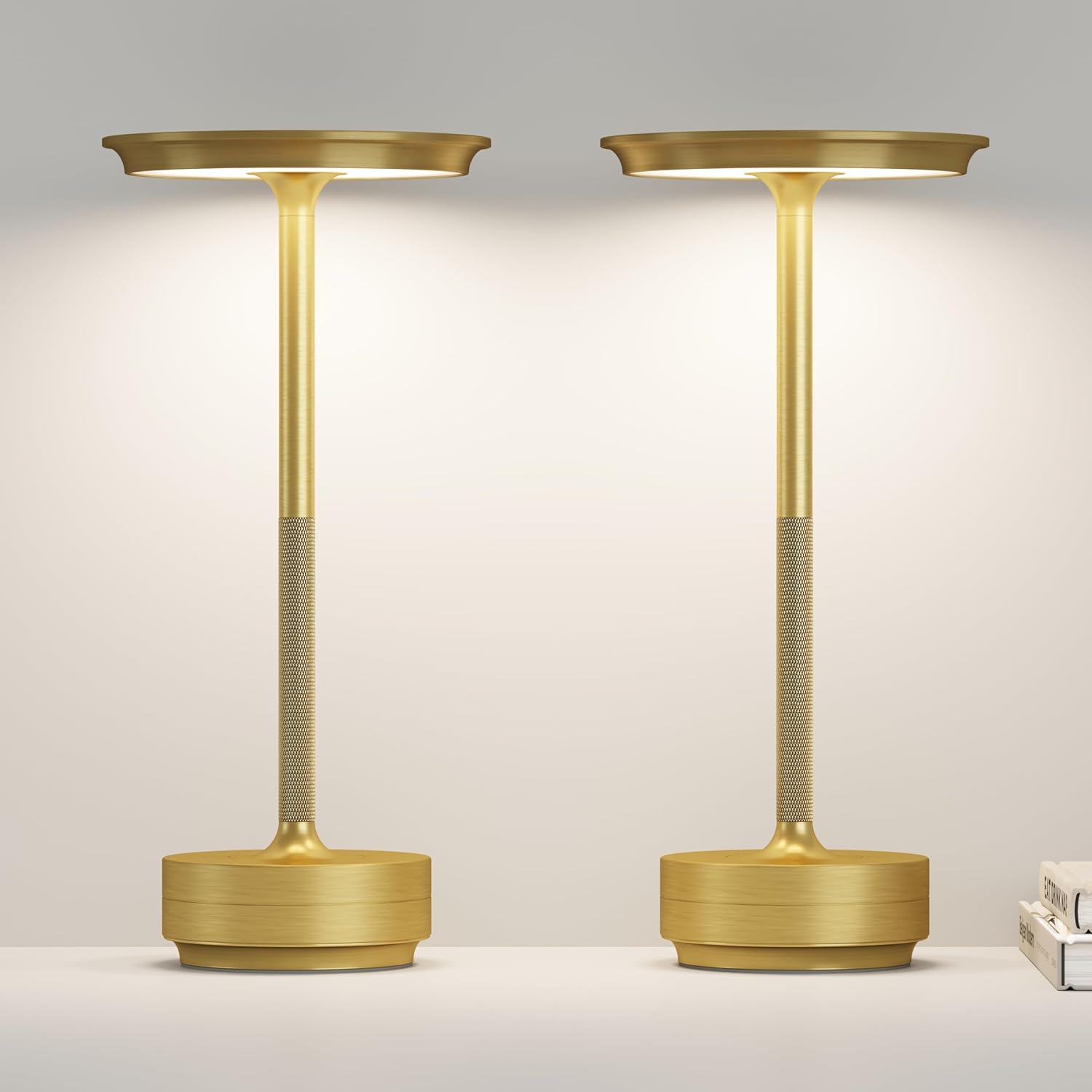 Cordless Rechargeable Table Lamp,LED Portable Touch 5000mAh Battery Operated Table Lights,with Memory Function 3-Level Brightness for Patio,Bars,Bedroom,Outdoor,Dinner,café(2P Gold)