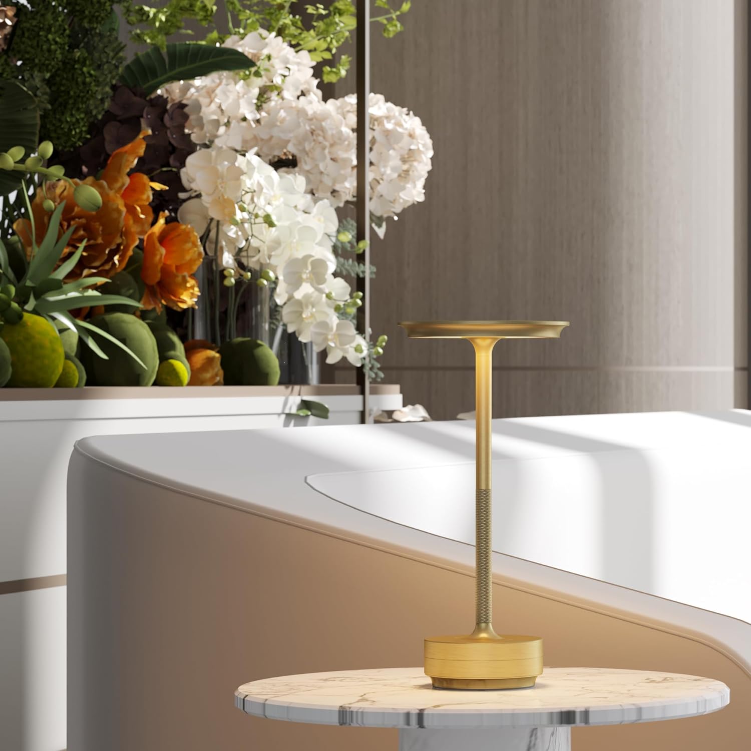 - Ultra-portable and Cordless design, rechargeable desk lamp designed for lighting: weighs 1.6 lbs, can be held in one hand/used in backpack side pocket, with silicone non-slip bottom design, solid and durable. One button touch on the top to adjust the brightness/on/off at any time with one hand, long press to control the light brightness adjustment, short press to switch the color temperature adjustment (3000K, 4500K, 6000K), three stepless dimming, brightness range 10%-100%. It can provide stable and eye-friendly decorative lighting for indoor/outdoor restaurants.