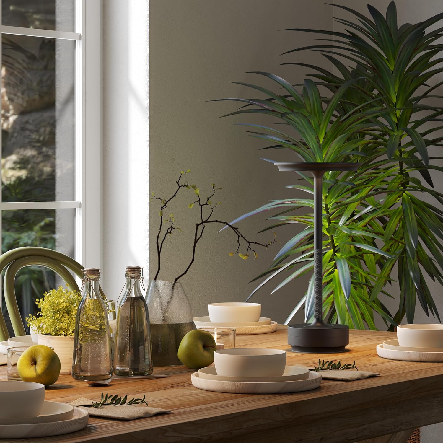 - Ultra-portable and Cordless design, rechargeable table lamp designed for lighting: weight 1.6 lbs, 3-color stepless dimming: one-touch sensor switch on the top, can be used with one hand/backpack side pocket, the bottom is made of silicone non-slip design, solid and durable. Brightness/on/off can be adjusted anytime with one hand, short press to switch 3 color temperatures - amber light (3000K)/natural light (4000K)/white light (6000K); long press to adjust the brightness (100%-10%). Provides stable, eye-friendly decorative lighting for indoor/outdoor restaurants.