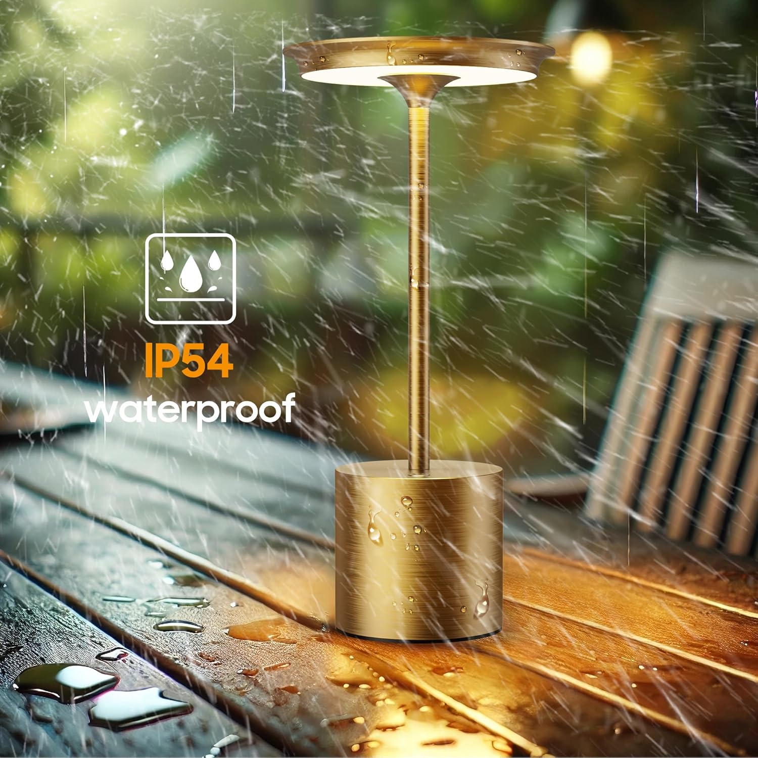 • IP54 Waterproof: Built to withstand splashes and dust, the IP54-rated design makes this table lamp ideal for outdoor environments like patios, gardens, and camping trips. Durable enough to handle everyday indoor and outdoor use.