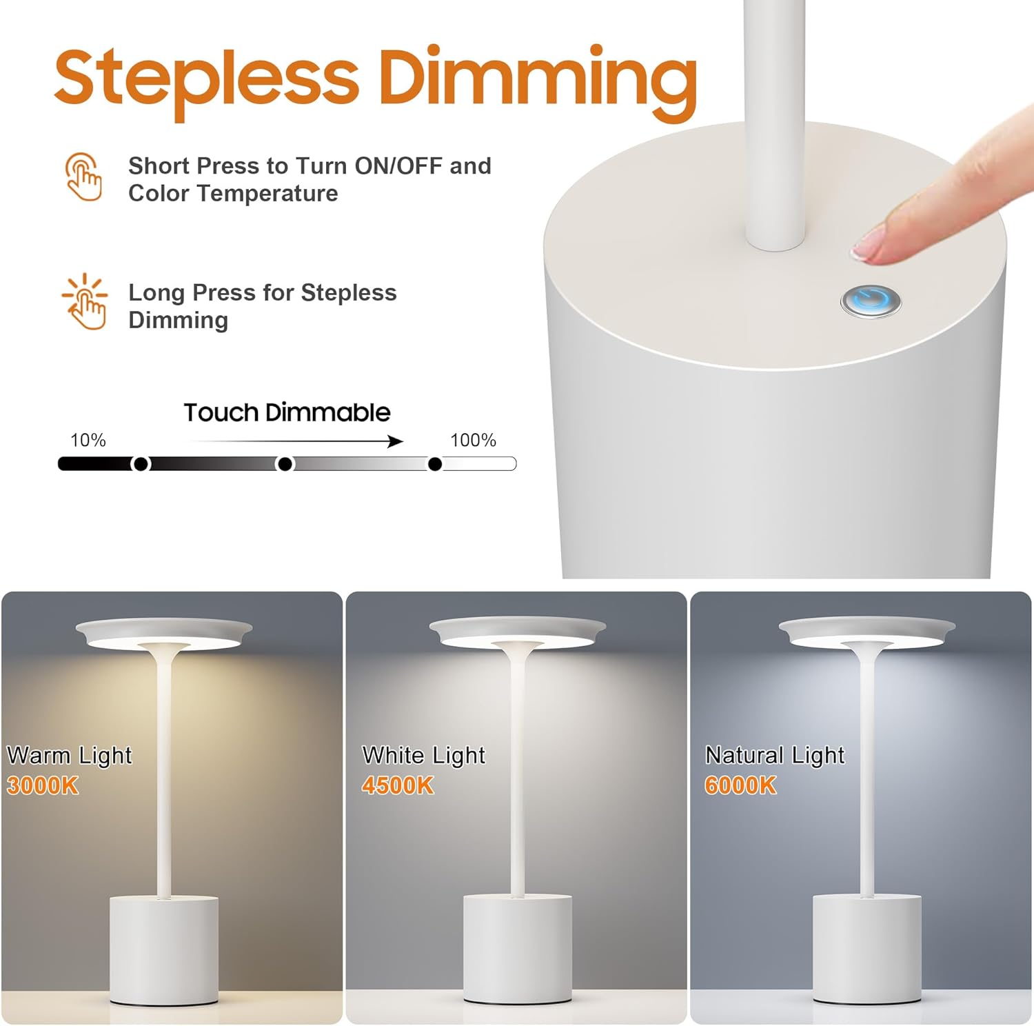 • 3-Color Stepless Dimming: Warm light, natural light and white light are available for you to enjoy customized lighting. Stepless dimming function allows you to easily adjust the brightness, long press to stepless dimming (100%-20%)