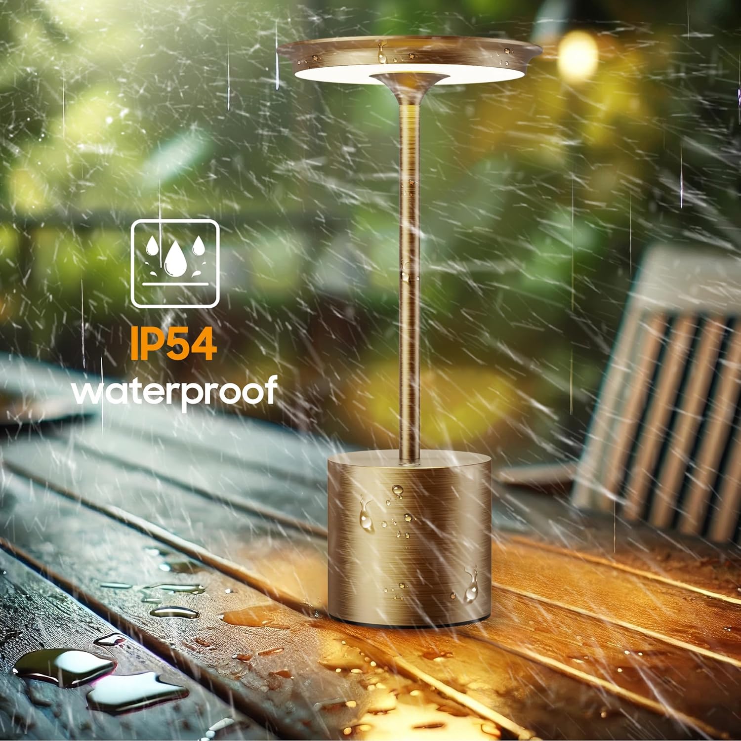 • IP54 Waterproof: Built to withstand splashes and dust, the IP54-rated design makes this table lamp ideal for outdoor environments like patios, gardens, and camping trips. Durable enough to handle everyday indoor and outdoor use.