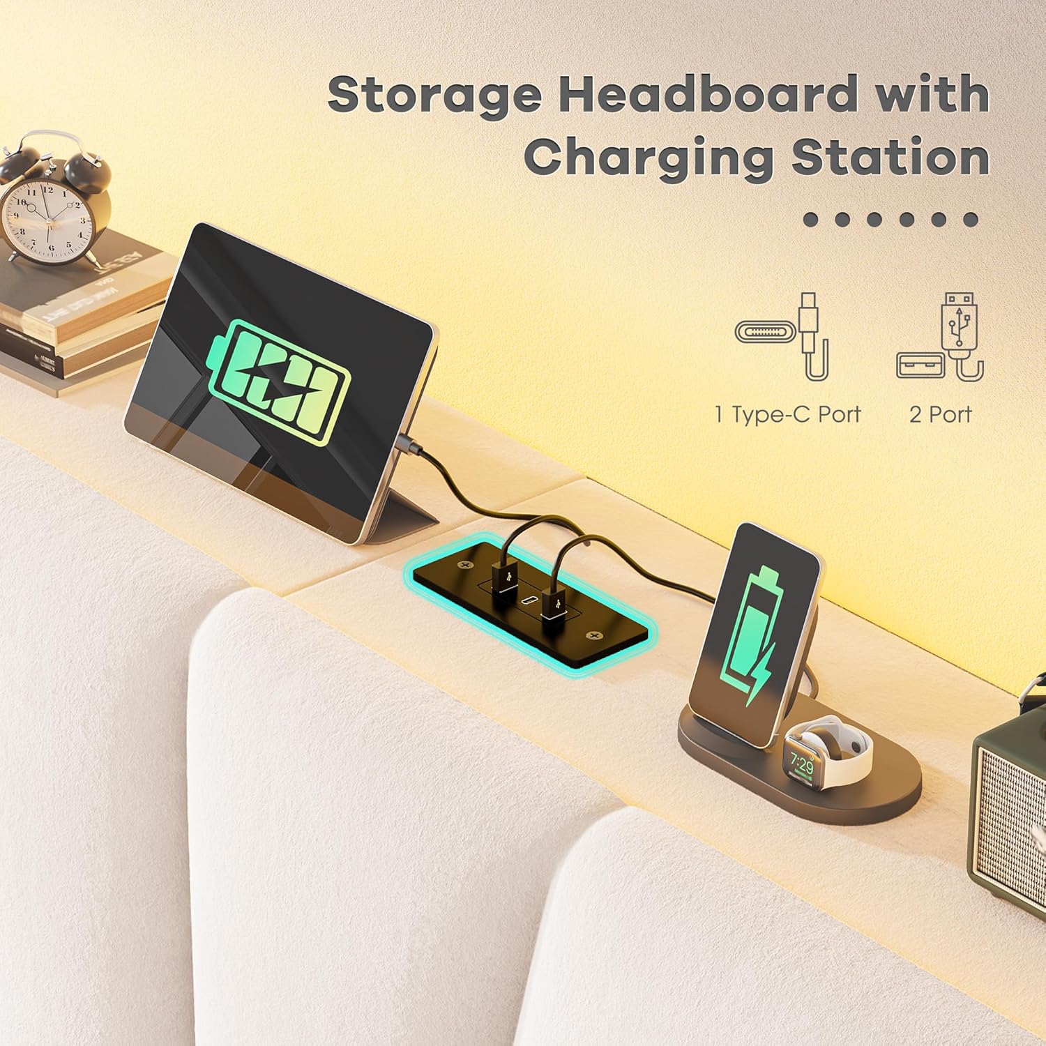 • Special Feature : Adjustable, Charging Station, LED Lighting, No Box Spring Needed