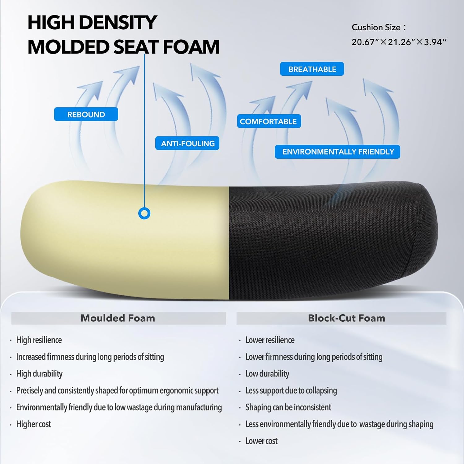 - 【Ergonomic Comfort & Workspace Upgrade】: Built for 40+ hours of weekly use, this ergonomic mesh office chair combines high-density foam seating with a durable breathable mesh back, creating a supportive yet relaxing environment. Perfect for home offices, corporate offices, study rooms, gaming setups, or waiting areas.