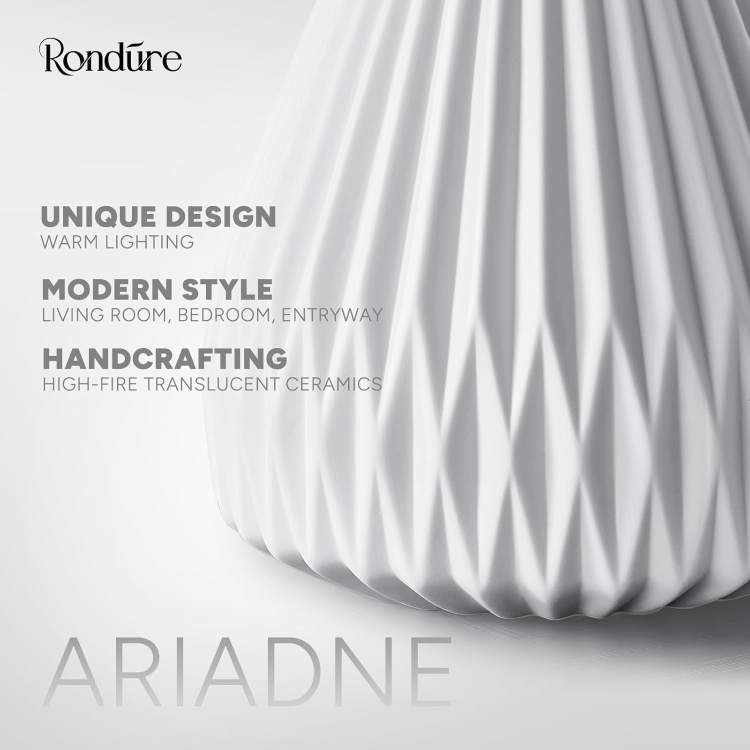 RONDURE 9.1" Modern Ceramic Table Lamp, Modern Bedside Lamps for Bedroom, Living Room and Nightstand, White Translucent Ceramic Shade, Warm Ambient Lighting, Home Decor