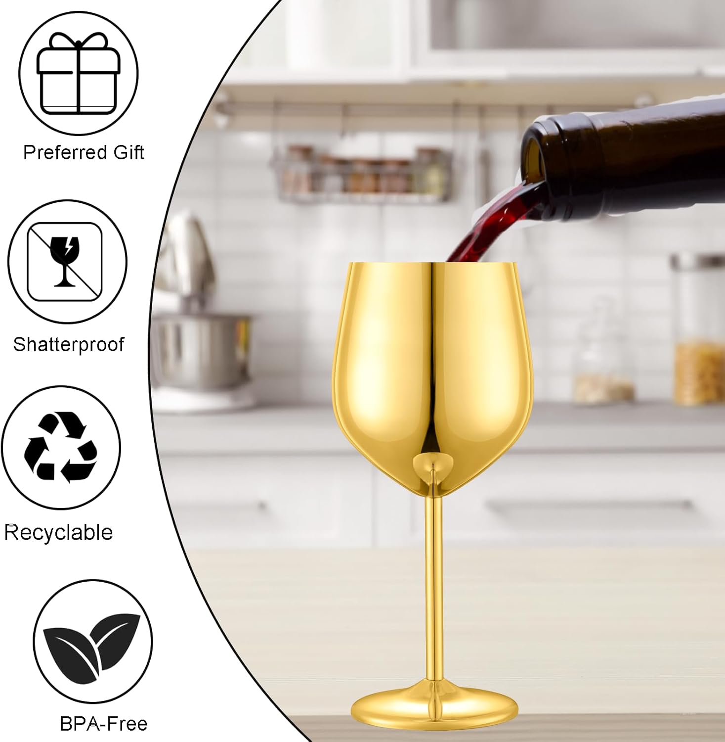 • Premium Unbreakable Stainless Steel Wine Glasses – Crafted from food-grade 304 stainless steel, BPA-free, these shatterproof wine glasses offer the elegant look of glass with unmatched durability. Perfect for travel, camping, boats, or everyday use, they're lightweight yet sturdy, ensuring a safe and worry-free drinking experience