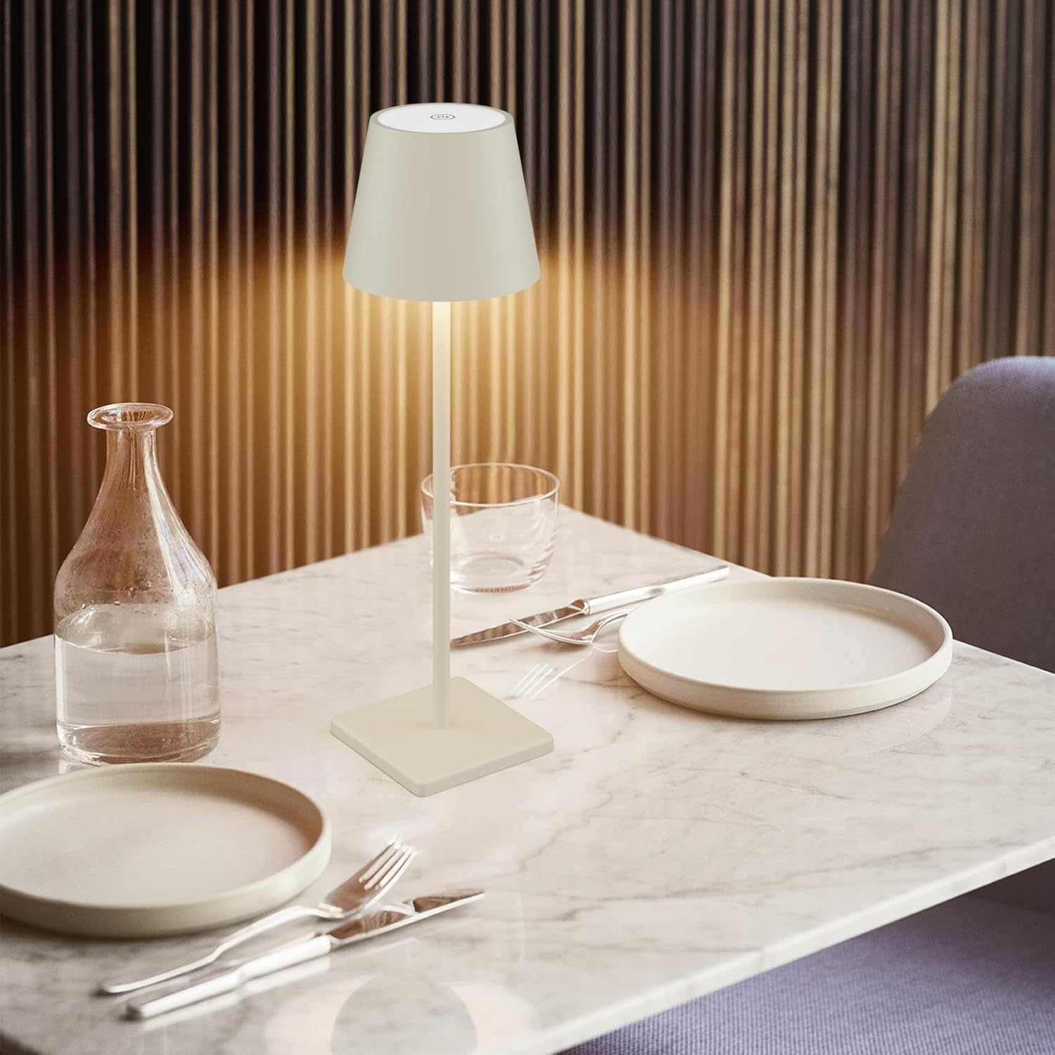 2-Pack LED Cordless Table Lamp, Rechargeable Battery Desk lamp 3W 5500mAh Battery Operated Stepless Dimming Modern Portable Table Light for Restaurant/Bedroom/Outdoor IP54 Waterproof (Off White)