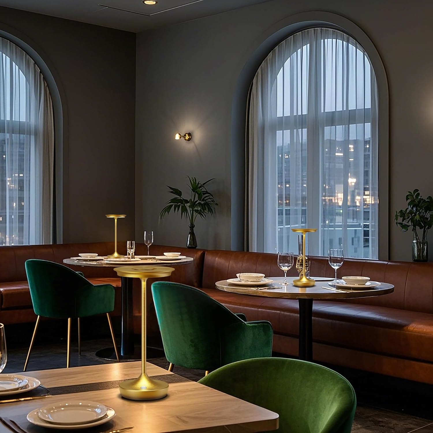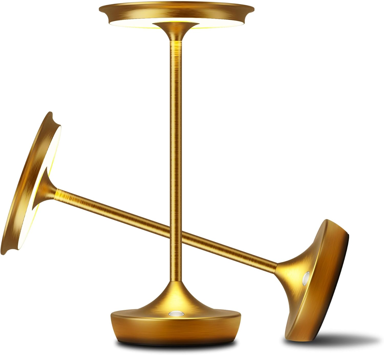 YHT Cordless Table Lamp, Restaurant Bedroom LED Rechargeable Stepless Dimming Desk Lamp, Outdoor Patio Portable 6000mAh IP54 Waterproof Table Light (Gold 2Pack)