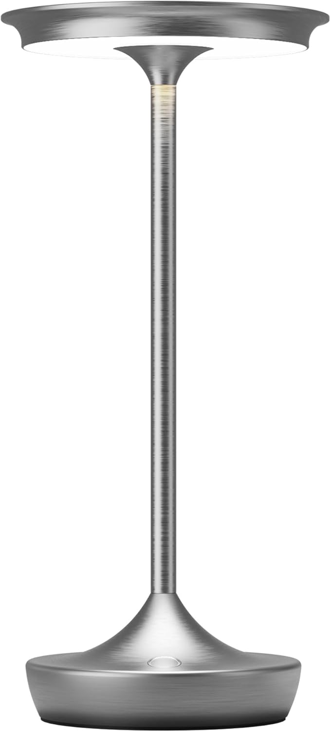 YHT Cordless Rechargeable Table Lamps, Portable 6000mAh Battery Desk Lamp Waterproof 3 Color Stepless Dimming LED Table Light with Memory Function for Outdoor/Dinning/Patio/Restaurant (Sliver 1Pack)